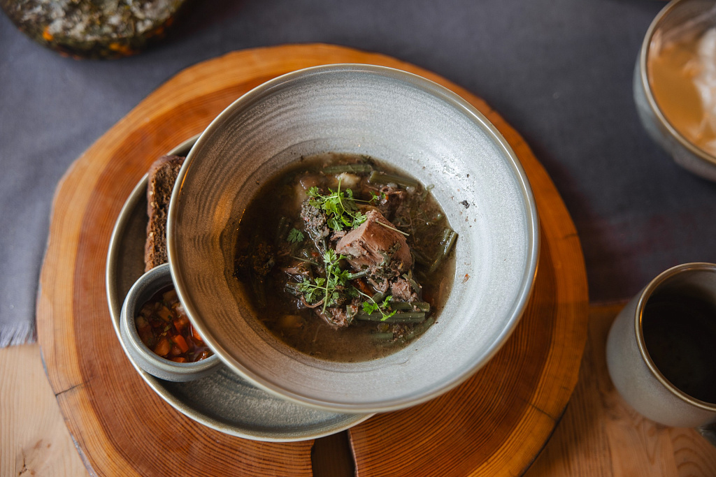 А как в «Манжероке» кормят! Изысканно, вкусно, разнообразно. Смело миксуя какие-нибудь мудреные гастрономические названия с местными специалитетами. Хочется отметить каждый ресторан. И дизайнерский «Тенгри», где у нас был заключительный ужин с квизом и песнями. И видовой бар «Чилим», где очень приятно чилить даже большой компанией. И умопомрачительный итальянский «Манжара», где хотелось длить каждый миг. И даже основной ресторан отеля, в котором накрывают удивительные завтраки с разными алтайскими вкусностями.
