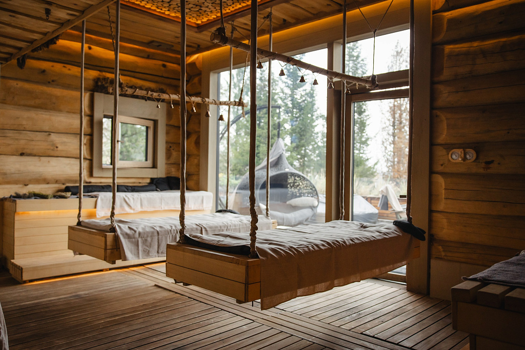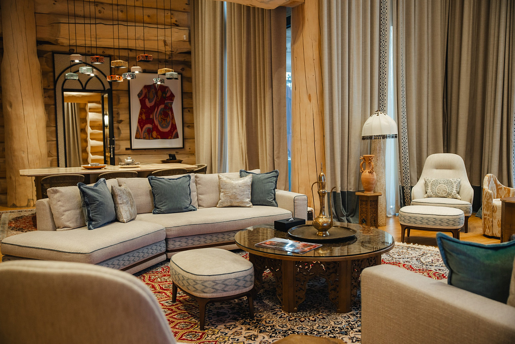 Рядом с банями находится комплекс невероятно красивых шале площадью более 400 м2, каждое из которых представляет стиль одной из бывших советских республик. Мы побывали в «Узбекистане» и в «Азербайджане». Поражает вкус архитекторов и дизайнеров, которые работали над этими пространствами.