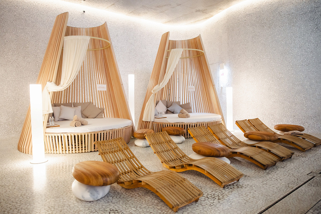 Одно из самых сильных впечатлений производит белоснежный спа. Туда можно уйти и … не вернуться, уж настолько хорошо в восьми банях и трех бассейнах. Однако банный комплекс еще круче – недаром он считается лучшим в России, что подтверждает полученная награда. Местные мастера банного дела творили над нами чудеса. Не передать словами волшебное ощущение от нескольких часов, проведенных там.