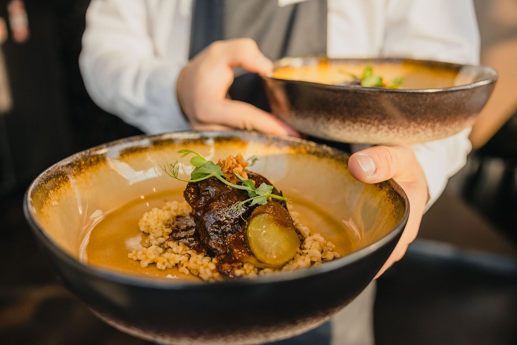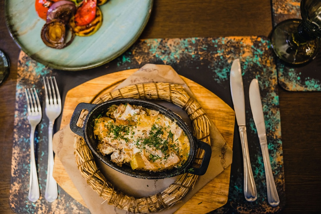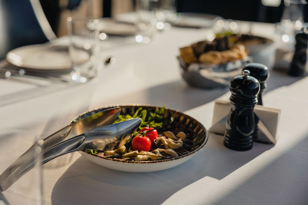 Авторские кофе-паузы и банкетное меню обеспечивает профессиональная банкетная команда. В банкетном меню есть предложение с белорусской национальной кухней. По запросу могут разработать и эксклюзивное меню.