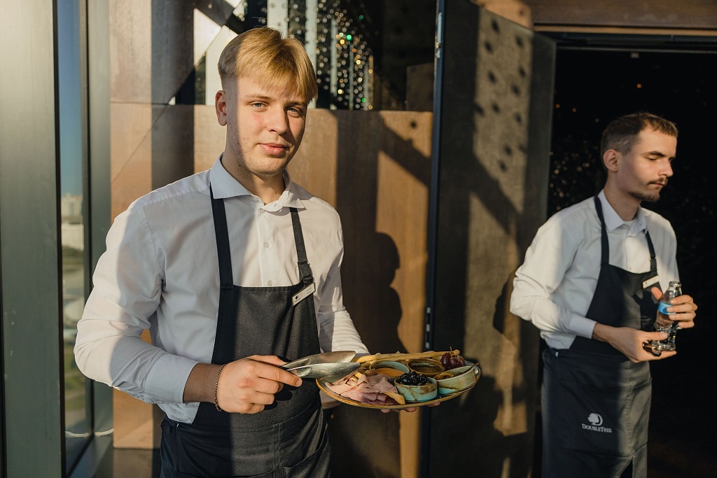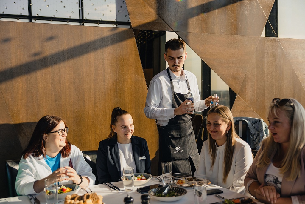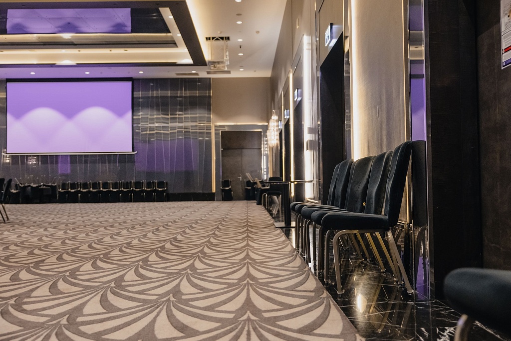 Мероприятия от пяти до 300 человек. В DoubleTree by Hilton Minsk соблюдаются стандарты безопасности EventReady by Hilton. Отель предлагает бальный зал площадью 530 м2, переговорные комнаты и креативные пространства для проведения деловых и торжественных мероприятий. Ballroom можно разделить на две или три части, аналогично делится малый конференц-зал площадью 81 м2, также есть переговорные комнаты для мероприятий до 35 гостей. Отметим, что из бального зала есть выход на просторную террасу с роскошным видом на Минск, где можно накрыть запоминающиеся кофе-брейки.