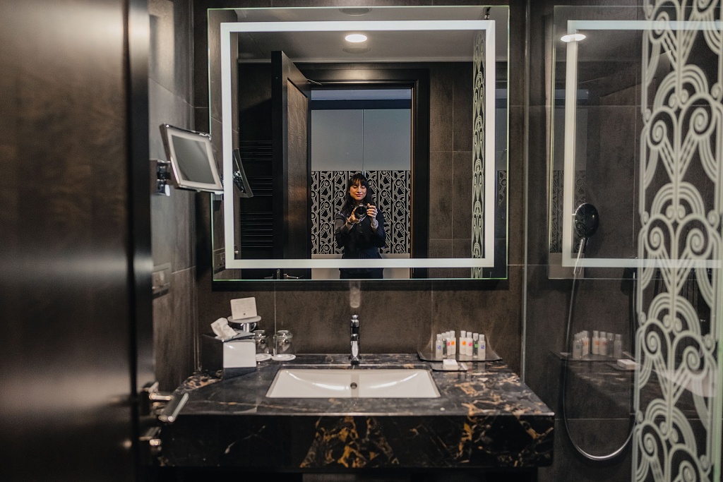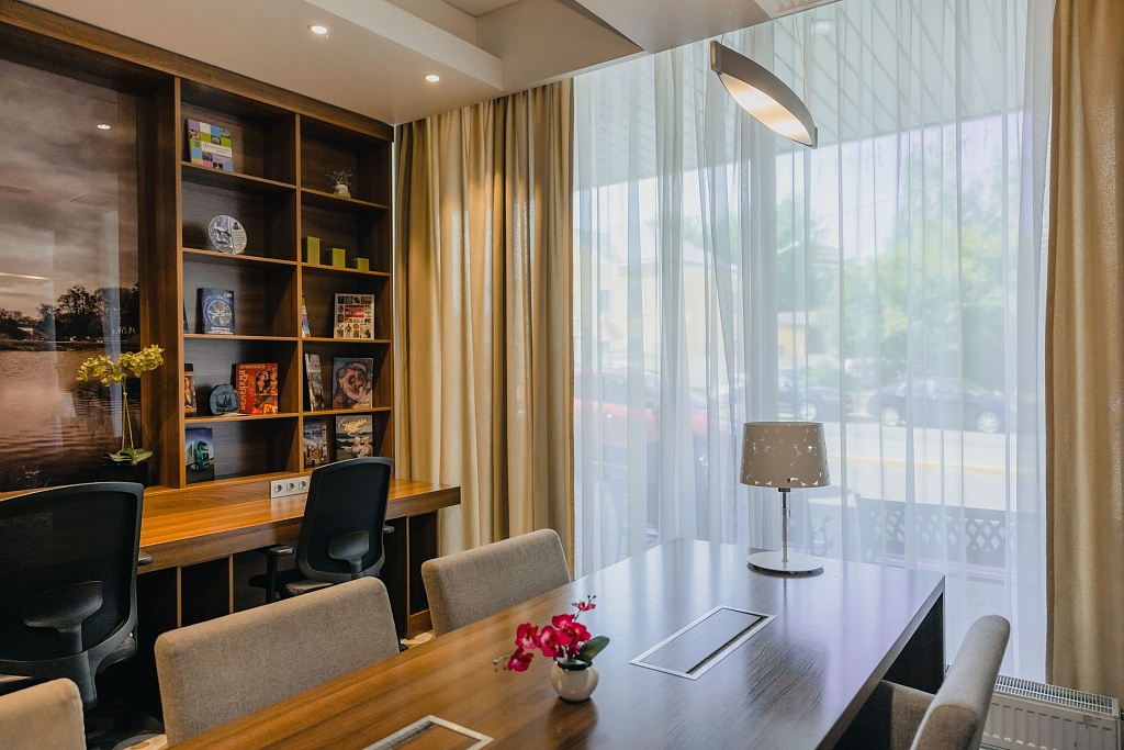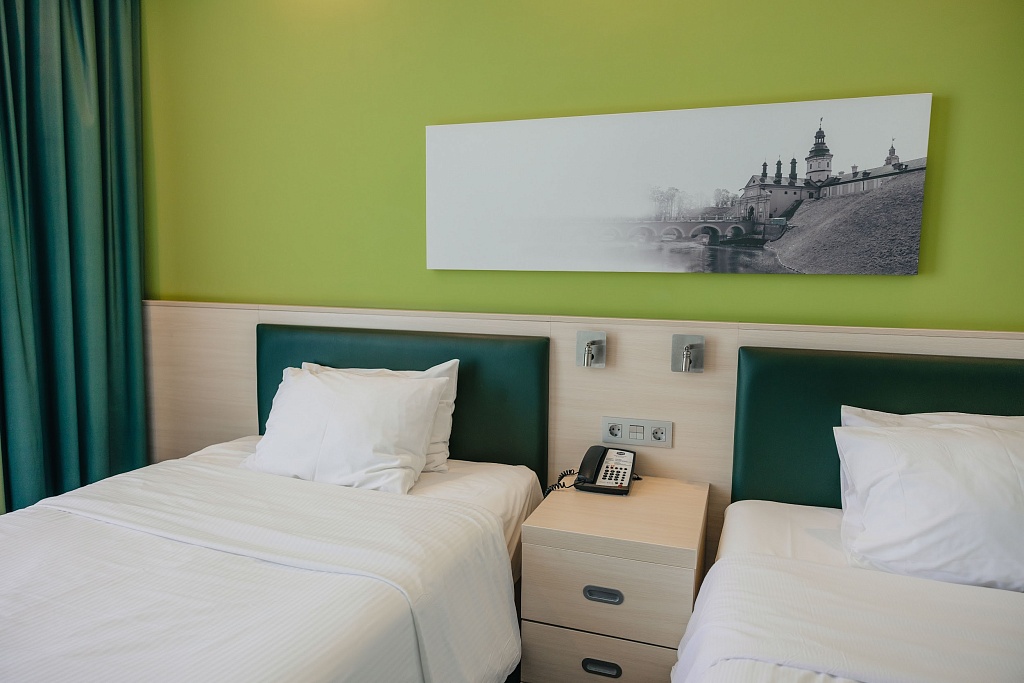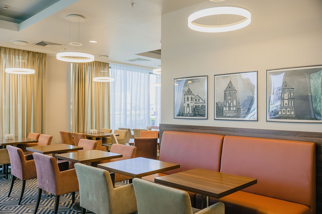 Мы провели в этом отеле две ночи. Прежде всего хотим отметить его очень удобное расположение для всех, кто приезжает на поезде. Рядом также находится станция метро и торговый центр «Minsk City Mall». Это образцовый бизнес-отель бюджетного варианта. Здесь 120 номеров, из них 80 «стандартов» с одной большой кроватью, 24 с двумя односпальными и 14 «семейных» номеров с двуспальной кроватью и раскладным диваном. В отеле два конференц-зала – «Малахит» (до 80 персон / его можно разделить на две части) и «Янтарь» (до 40 персон), также есть переговорная комната «Аметист». Все помещения с дневным светом. Ресторан отеля работает на завтраках, обедах и ужинах. Примечательно, что завтраки для проживающих бесплатные (!). Обратите также внимание, что в вечернее время за аренду залов можно получить скидку 50%, а в выходные и праздничные дни – 30%.