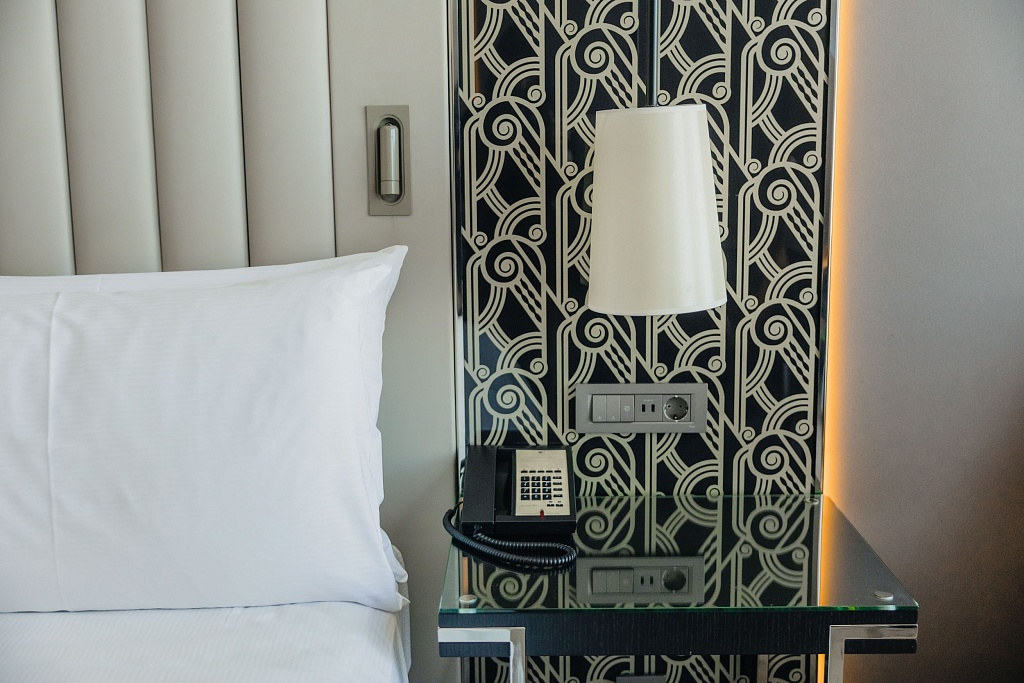 Все номера оформлены в стиле ар-деко. «Люксы» представлены в трех категориях: «Дипломат» (92 м2), «Амбассадор» (109 м2) и «Президентский» (168 м2). В «люксах» к услугам гостей элегантная гостиная со стильной мебелью, кофейная станция и роскошная кровать размера King Size.