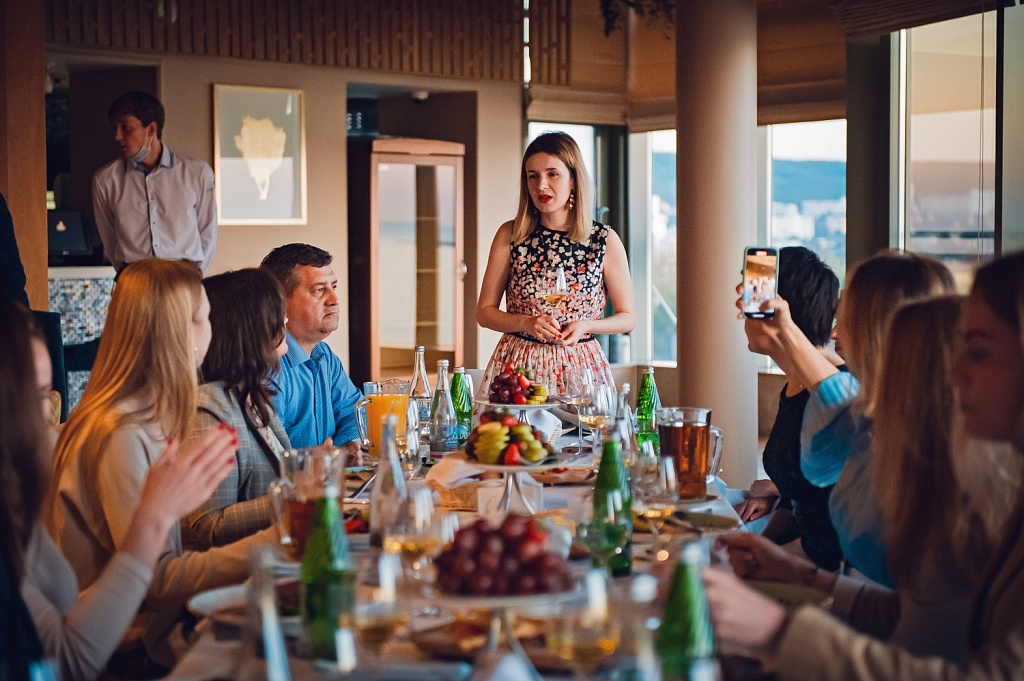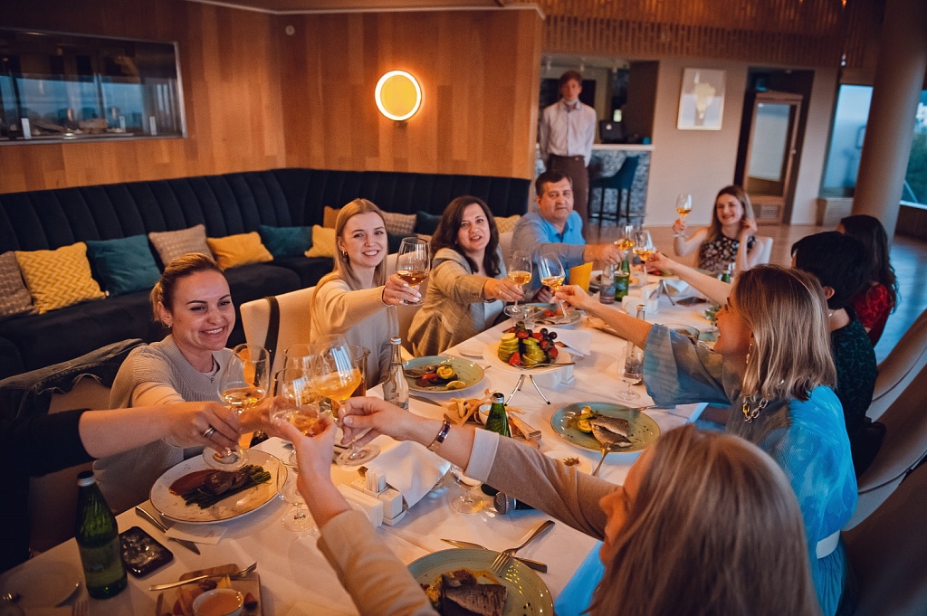 В первый вечер здесь – в ресторане «Горизонт» - специально для нашей группы организовали приветственный вечер, с живой музыкой, изысканной едой, видом на легендарную бухту Геленджика и прекрасным, как на заказ, закатом. Это было весьма эксклюзивно и тонко.