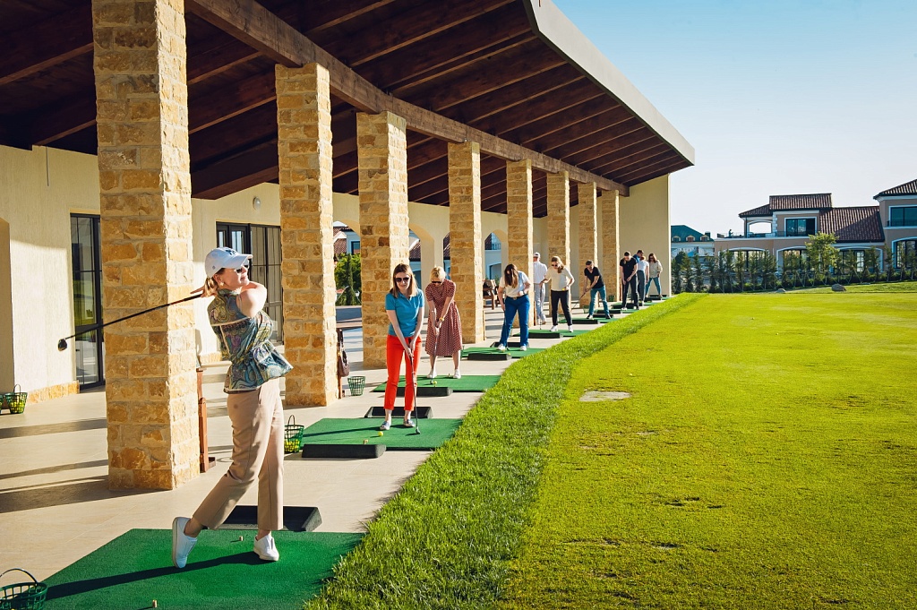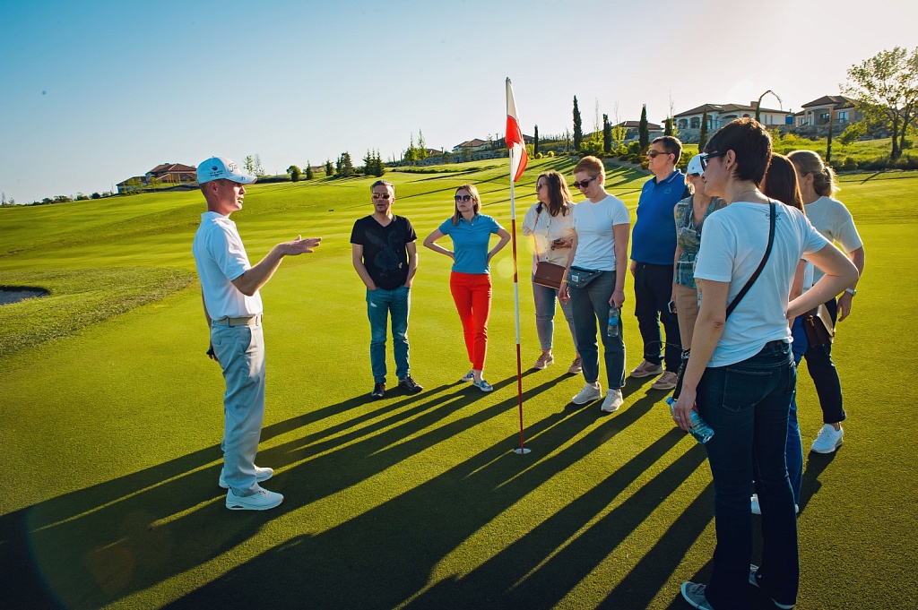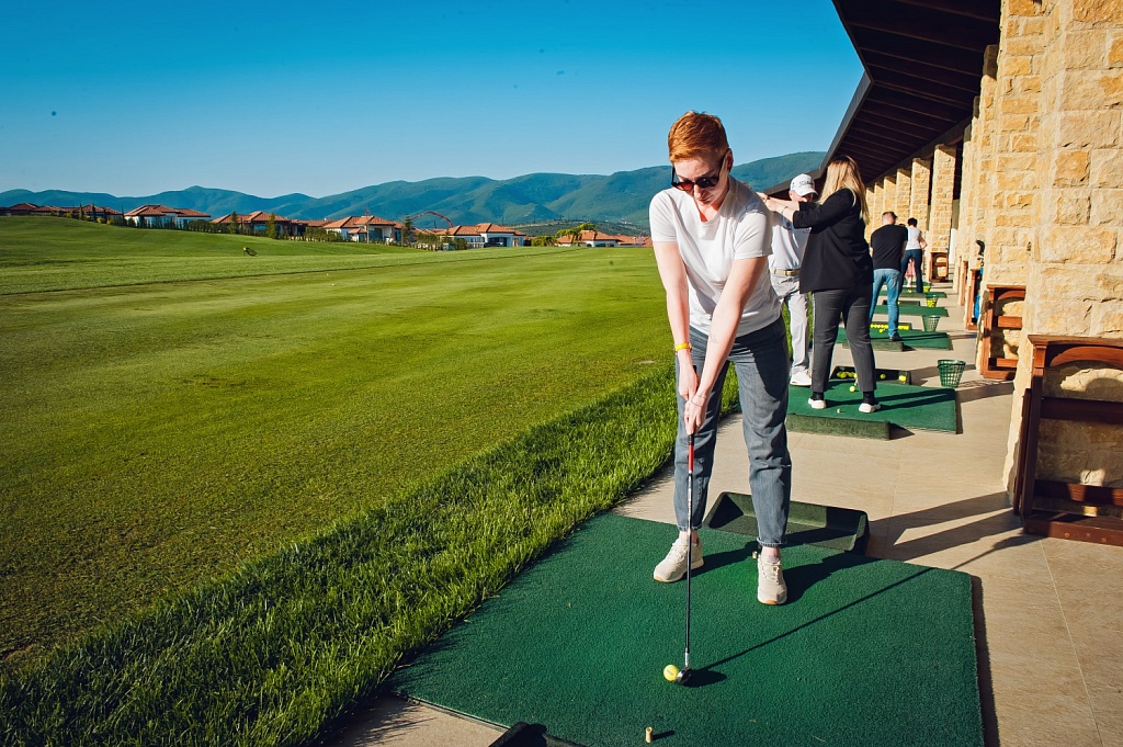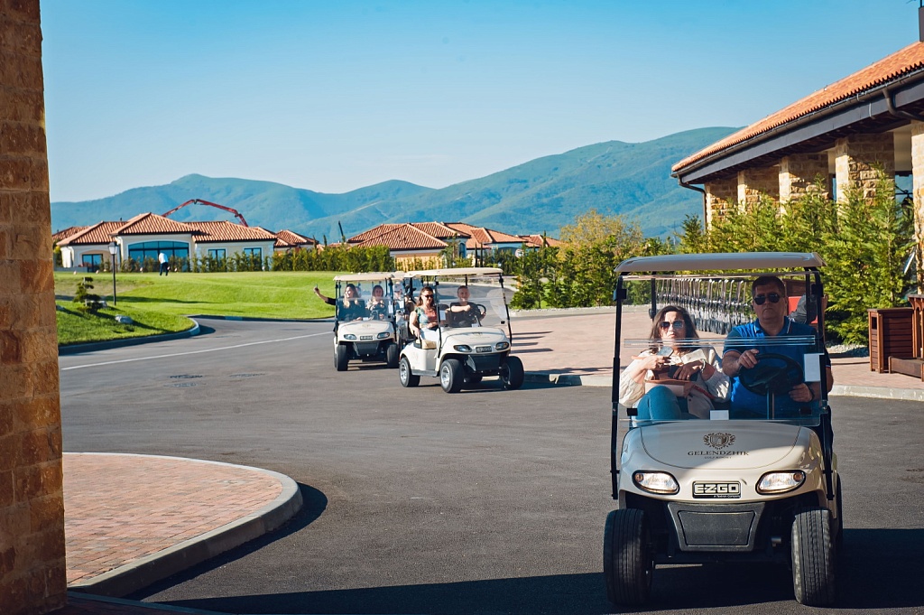 Во-вторых, вдохновленные апрельским номером MICE&more мы отправились в гольф-клуб «Геленджик Гольф Резорт». Здесь нам предложили обзорную экскурсию на гольф-карах и открытый урок по гольфу.
