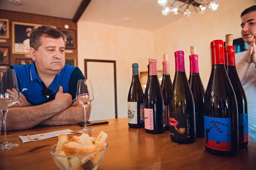 Выпил вина «Кирпичи прилетели», закусил гермафродитом и все это на ... гравитационной винодельне. Поясняю: гравитационная винодельня не в воздухе летает, она расположена на разной высоте горы и весь процесс производства вина естественным образом идёт сверху вниз, что, по словам винодела, не приводит к стрессу сам виноград. Нейминг вина «Кирпичи прилетели» спорный, но явно запоминающийся!