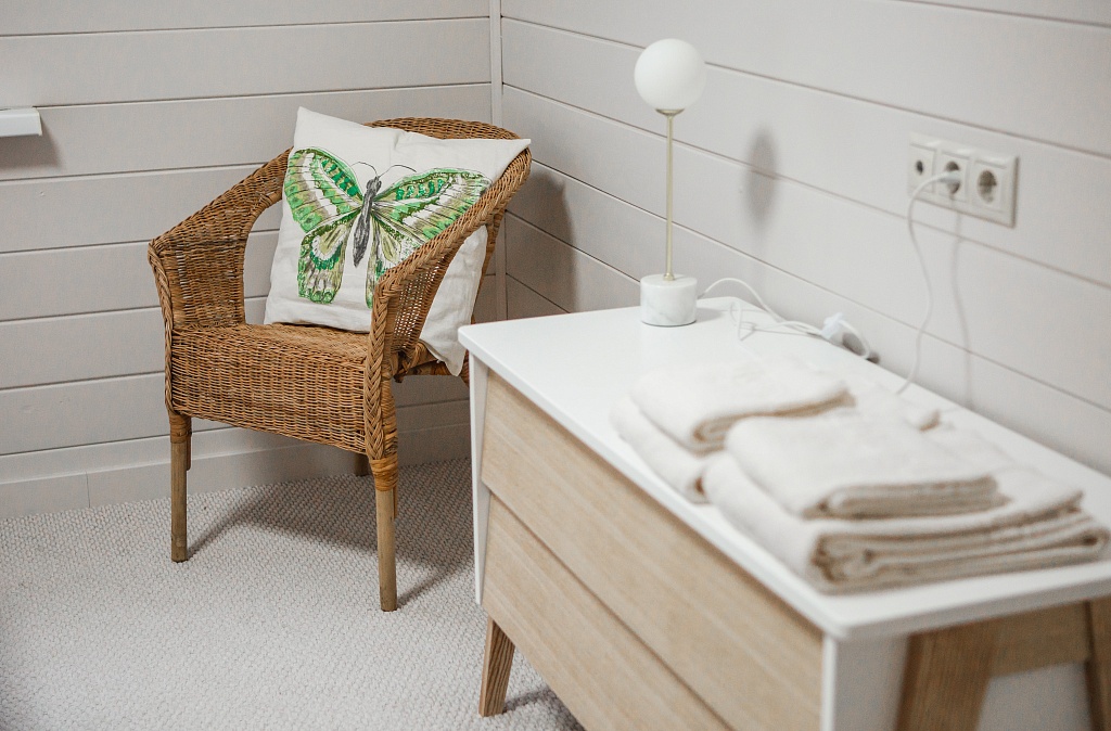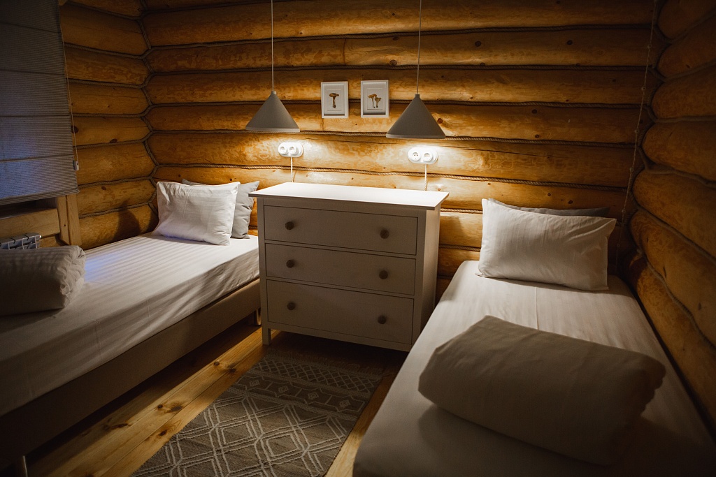 Впечатления MICE&more: «На территории отеля есть улицы. Например, «Ягодная», на которой все коттеджи носят вкусные названия – «Малина», «Клубника», «Ежевика». Наш главный редактор и фотограф жили в «Морошке». Как только заходишь в дом, название сразу оправдывает себя. Покоряют тепло и уют натурального дерева. Подогреваемые полы, качественные матрасы «Аскона», предметы быта, сделанные руками местных рукодельниц. Здесь просторно, тихо, уютно и комфортно. Все родное».
