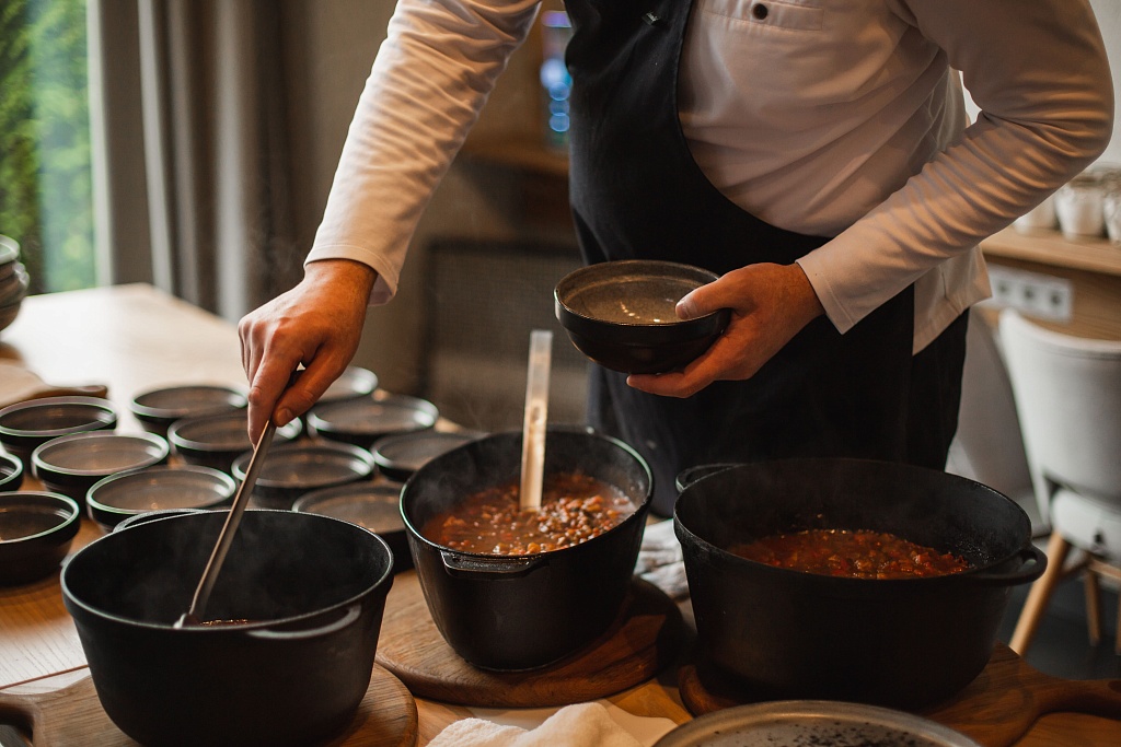 SheLESt «смотрит» на реку и тихий лес, а вместо музыки здесь поет … канарейка! Эта близость к природе – визитная карточка отеля и точка притяжения на гастрономической карте для всех, кто стремится открывать для себя локальные вкусы и ценит талантливое авторское исполнение. В основе блюд ресторана – дикая рыба и мясо из дровяной печи, а в составе основных блюд и салатов – овощи из собственной теплицы и молочная продукция от местных фермеров.