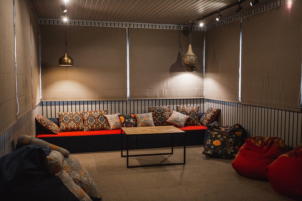 Для небольших камерных мероприятий отлично подойдет пространство Just Kult – по-домашнему уютное, оснащенное мягкой мебелью и кинопроектором. А Secret Room может трансформироваться под любой формат: конференция или закрытый банкет до 40 человек, гримерная для артистов или отдельное помещение для детского праздника.
