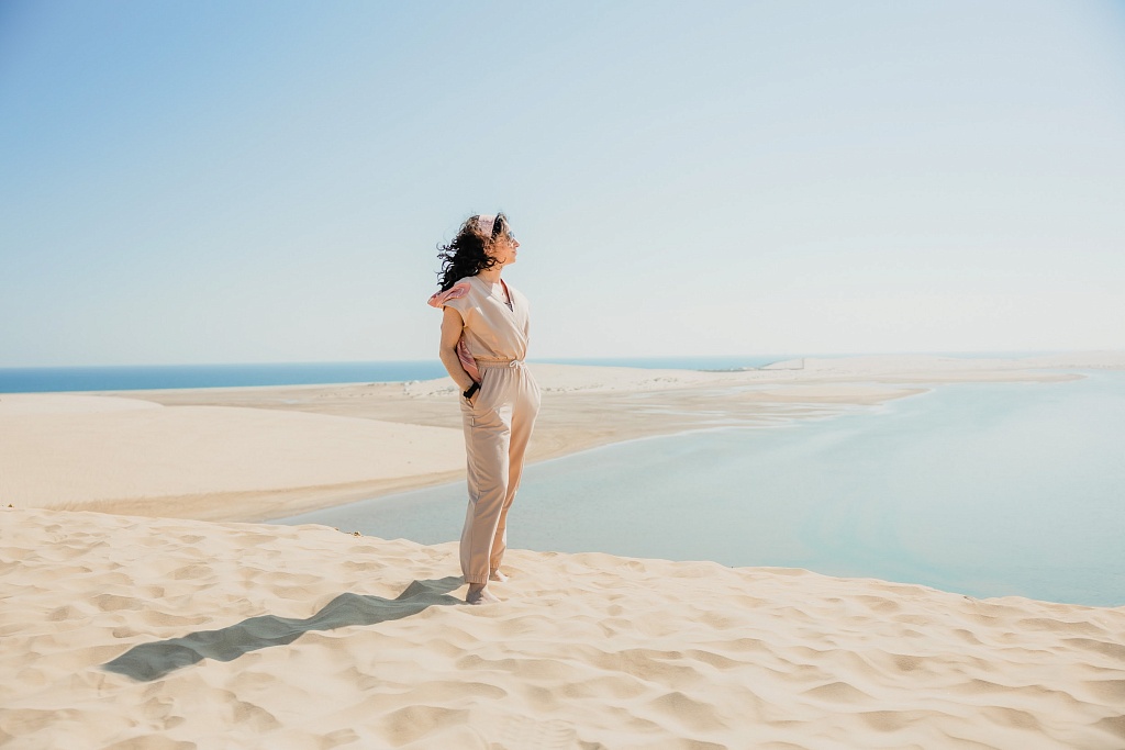 Конечно, невероятно удивил проезд на джипах по высоченным барханам. Однако кульминационный момент в этом сафари – по-настоящему захватывающий дух – это внезапный спуск к внутреннему морю, когда пески пустыни встречаются с безмятежной водной гладью. Там же расположен глэмпинг Regency Camp, где можно сделать комфортную освежающую остановку.