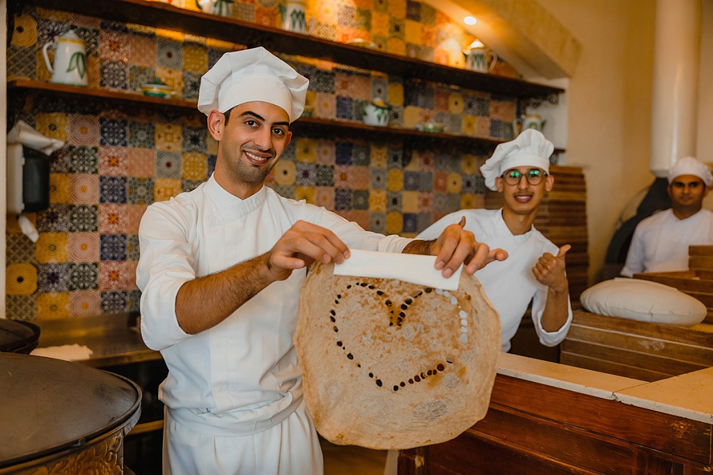 Расположенный на вершине холма в культурной деревне Катара Bayt El Talleh может похвастаться изысканным видом на «Жемчужину» и Арабский залив. Говорят, что в элегантном интерьере Bayt El Talleh гости чувствуют себя так, будто они прибыли на ливанскую загородную виллу. Мы сели за столы на террасе и получили огромное удовольствие от изысканной ливанской кухни, особенно от свежеиспеченной на наших глазах лепешки. Место отлично подходит для групп!