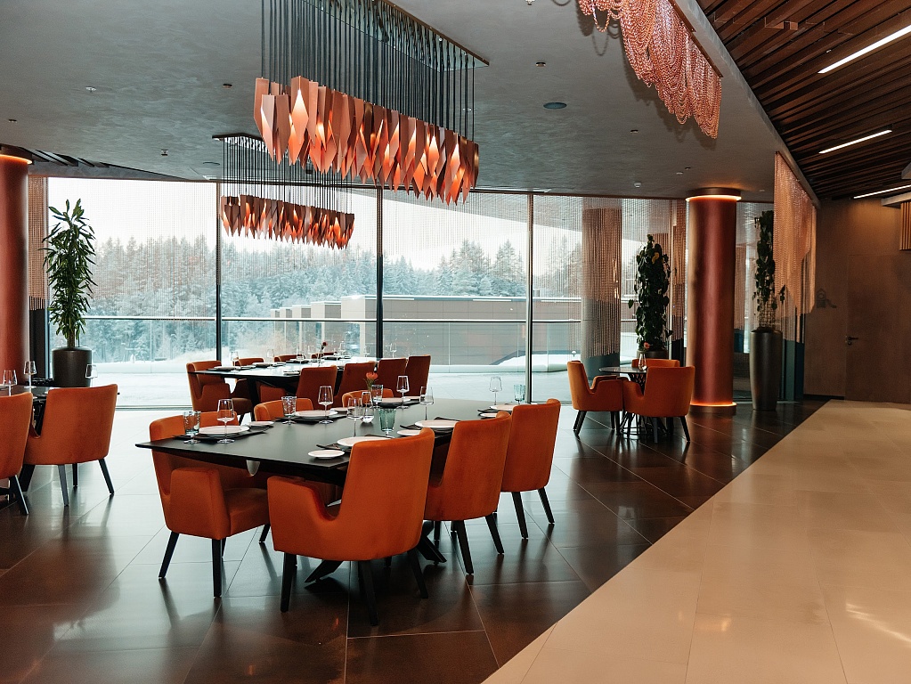 Представьте себе: панорамные окна с видом на лес, открытая терраса, дизайнерский интерьер … Каждая деталь создает здесь атмосферу комфортного загородного отдыха. В ресторане расположена и камерная сцена, поскольку по выходным в "Репино-Ленинском" играет живая музыка, проходят спектакли и концерты.