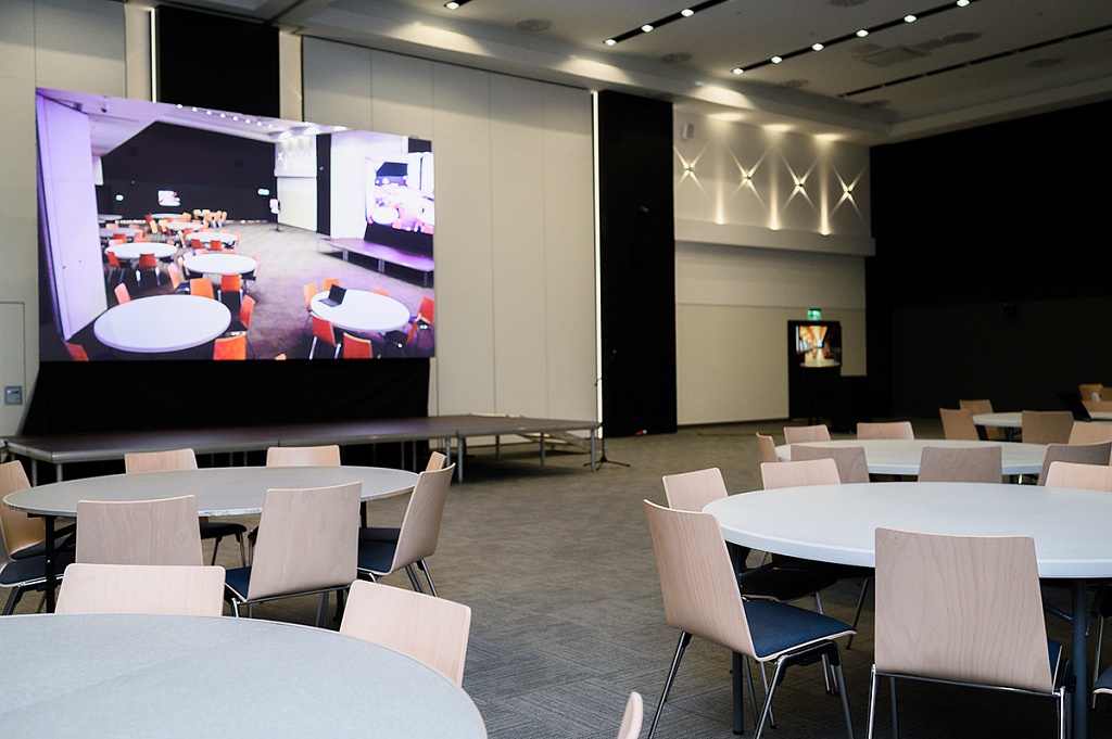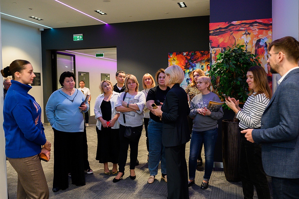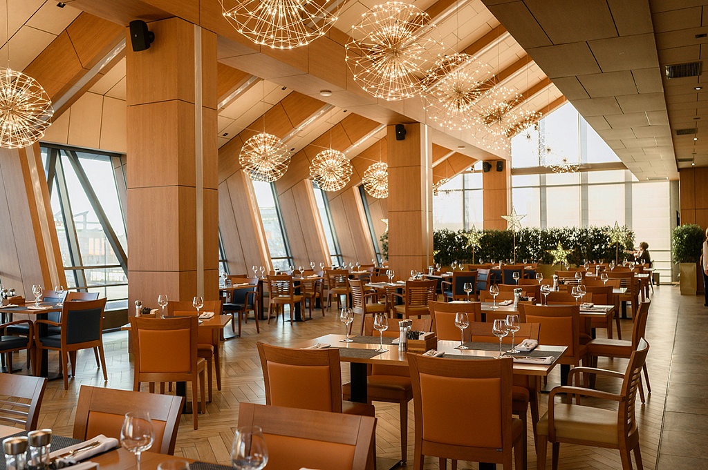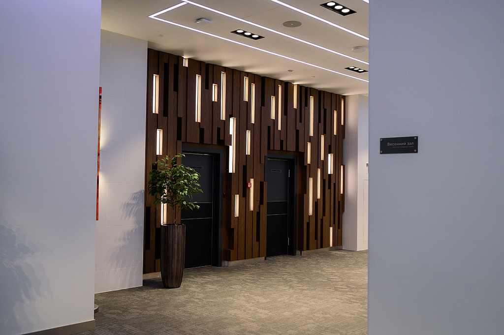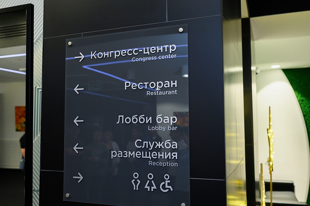 Главные впечатления подарил, конечно, конференц-центр. Это площадка Будущего, на которой проводить мероприятия можно уже Сейчас. У нас, как у организаторов, горели глаза. Представьте себе светлые дизайнерские холлы, где по потолку проложена навигация в цвете вашей корпорации: ваши участники легко найдут по этим линиям свои залы. Или отличный гаджет - «умная панель управления», с которой вы можете руководить процессами одновременно в нескольких залах. Звук, свет, экраны – все меняется по мановению ваших пальцев. Нас приятно удивило, что экранный контент во время инспекции был подобран уже из нашего ознакомительного тура. Это был настоящий сюрприз, и мы были тронуты таким внимательным творческим подходом.