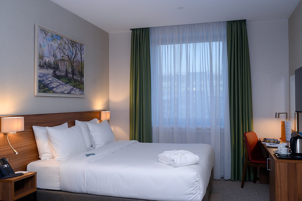 ИНСПЕКЦИЯ. Наверное, еще никогда у нас не было такой подробной и внимательной к деталям инспекции отеля. С одной стороны, схема привычная: номера, конференц-залы, различные сервисы. Но знакомство заняло более полутора часов и нам не хотелось, чтобы оно заканчивалось. Восхитили дизайнерские решения – лаконичные, бизнесовые, и при этом с арт-составляющей: полотна современных уральских художников и картины из самоцветов дают возможность «прочувствовать город».