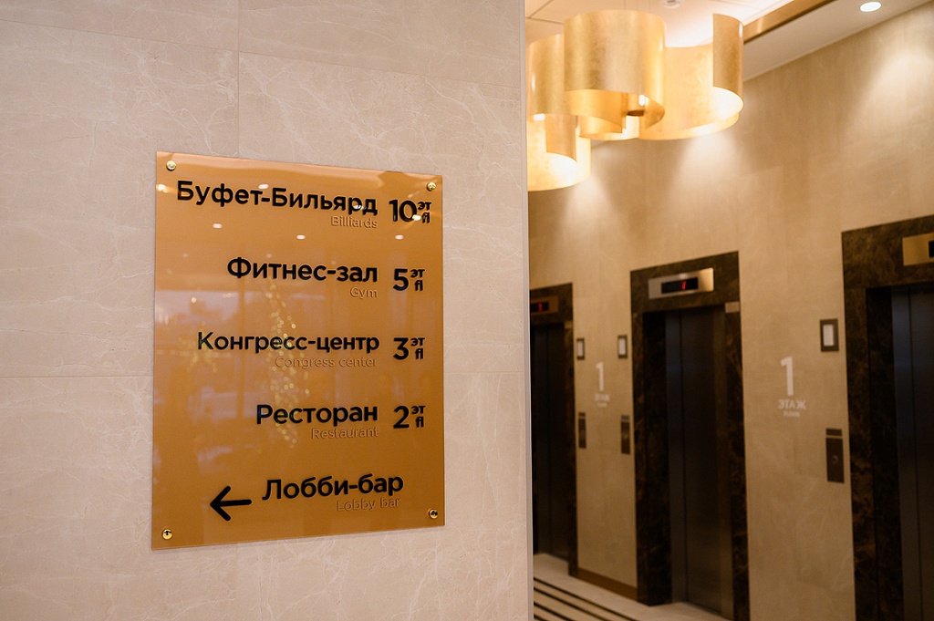 Можем сделать и анонс. У отеля есть хорошо оборудованный фитнесс-зал. В перспективе тут планируют дополнить небольшой спа-зоной. А мы порекомендовали рядом с бильярдной и баром на 10-ом панорамном этаже открыть комнату для караоке, это хорошо разнообразит вечерний отдых в отеле после делового дня.