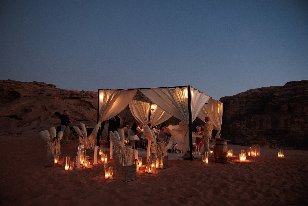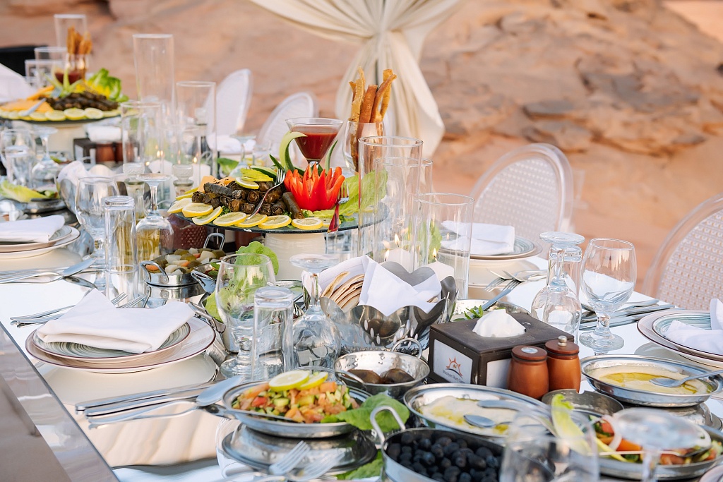 Вади Рам. Наш обратный путь в Амман лежал через «лунную» пустыню. Она включена в список Всемирного наследия ЮНЕСКО как в природной, так и в культурной категории. Здесь снималось большое количество фантастических блокбастеров (в частности, «Марсианин» и «Дюна»). В Вади Рам нас пленили высоченные горы из песчаника и каньоны между ними – именно в них проложены самые увлекательные маршруты. Заповедник можно исследовать несколькими способами: на внедорожнике с водителем-гидом (как сделали мы), на верблюде с проводником или даже на воздушном шаре. После активных приключений всем рекомендуют настроиться на тишину и заняться, например, йогой. Но нам был предложен другой незабываемый вариант – ужин со свечами на закате в окружении космических пейзажей. Меню из национальных блюд, главное – запеченная в земле баранина. Хотим отметить, что глэмпинг с комфортными купольными домами под бездонным звездным небом – это фантастика. Жаль, что нам не удалось остаться здесь на ночь. Значит, тоже придется вернуться.
