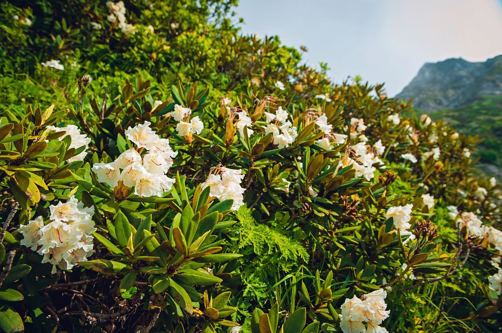 Но не только животный мир Кавказского заповедника привлек наше внимание, растения-индемики и белоснежные рододендроны, усыпавшие склоны гор, подарили нам возможность сделать потрясающие фотографии на их фоне. Эти живописные луга были манящей мечтой главного редактора издания MICE&more Лины Москвиной, и мы рады, что она осуществилась.