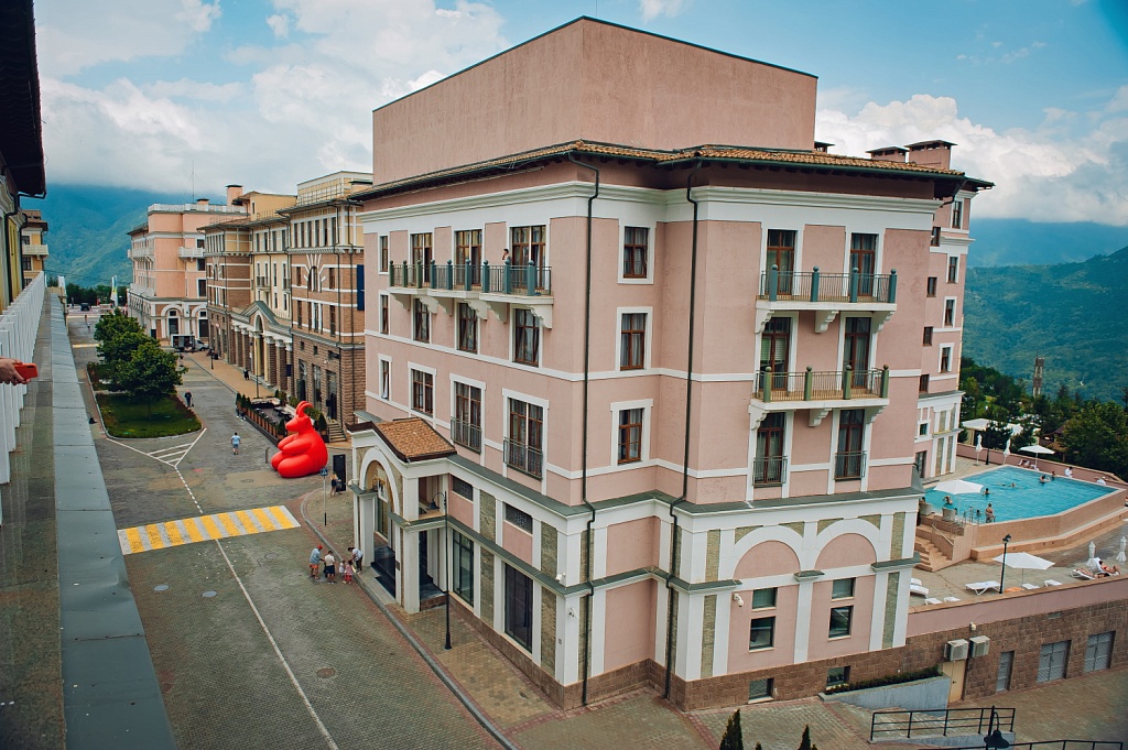 А мы просыпались в отеле с потрясающими видами на горы, что не менее прекрасно. Конечно, мы воспользовались случаем и проинспектировали отели Курорта Красная Поляна на уровнях Поляна 540 и на Поляна 960. Акцент мы сделали на возможностях комфортного летнего отдыха и проведения мероприятий. Топ-1 в нашем списке это открытый инфинити-бассейн в отеле «Dolina 960» 4* с панорамными видами на горные склоны. В шаговой доступности от отеля есть лужайка для занятий йогой и горные бани «4 стихии» с открытым бассейном, купелями и джакузи, а также множество кафе и ресторанов.