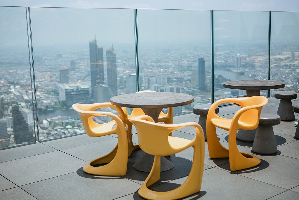 Обзорная площадка Mahanakhon Sky Walk. Обязательна к посещению, как Эйфелева башня в Париже. Благодаря прозрачному полу, вы словно парите над Бангкоком на высоте 310 метров. Самые эффектные фотографии – отсюда.