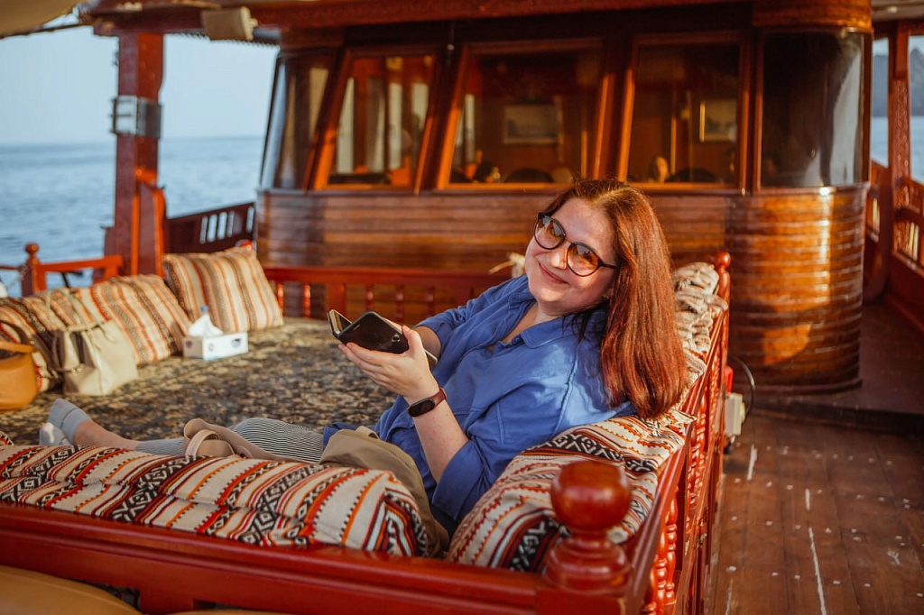 1.Закатный круиз по заливу на традиционной лодке dhow: есть еще и утренние круизные варианты – «на встречу с дельфинами», но вечерний нам показался максимально романтичным: когда спала жара и опустились сумерки, хотелось длить каждое мгновенье.