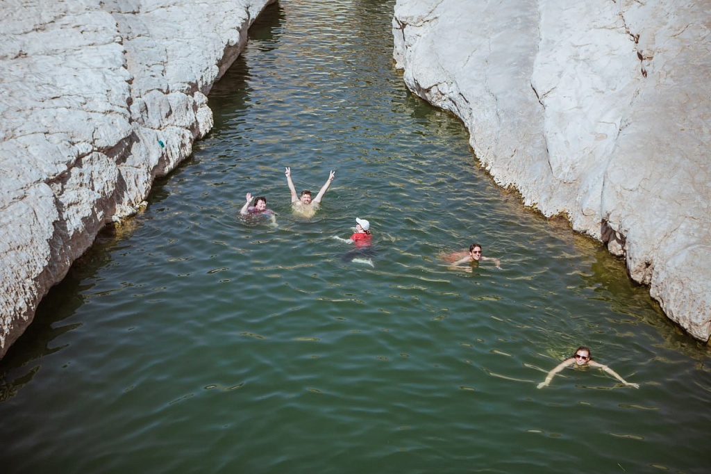 Вади — это высохшие русла рек и водоемов, которые время от времени наполняются водой. По сути, оазисы: прохладные изумрудные озера в окружении скал и пальм. Если вас пригласили в поездку на вади, значит, вода там есть. Соответственно, вы едете туда, чтобы поплавать, понырять, заглянуть в пещеры. Будьте готовы и возьмите купальные костюмы.