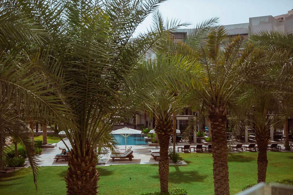 «С иголочки» значит «совсем новый». Отелю всего один год. Он красиво раскинулся вдоль живописной бухты между причудливыми скалами и блистающим Аравийским морем (температуры воды восхитительная!). Рядом с основным зданием расположены виллы, по соседству строятся резиденции. Продуманное дизайнерское пространство, два бассейна, бары и рестораны. Две стильные переговорные комнаты и впечатляющий ballroom «Жемчужина» на 1000 мест. Можно накрыть столы в зеленом саду с видом на море (до 100 гостей). Мы остановились в этом отеле на два дня, оценили его вкуснейшую кухню (вплоть до изысканных устриц), и у многих из нас он занял первое место в личном рейтинге.