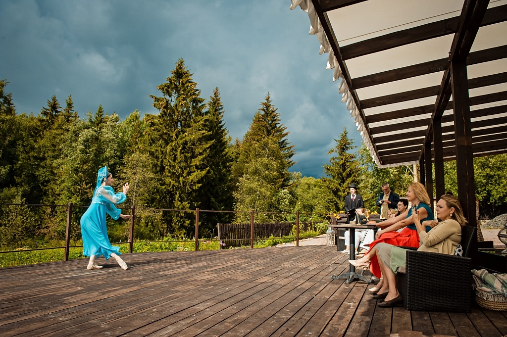 А что за чудо эти шляпки от топ-стилиста Анны Михайловой!.. Мы так увлеклись ими, что чуть не опоздали на концертную программу, а ее пропустить было нельзя, ведь специально для нас были исполнены самые известные номера Русских Сезонов – Анны Павловой, Матильды Кшесинской, Федора Шаляпина. Приятно, знаете ли, сидеть на уютной веранде с бокалом игристого и на фоне зеленой дубравы лицезреть образцы высокого искусства. В какие-то моменты хотелось воскликнуть «Остановись, мгновенье, ты прекрасно!».