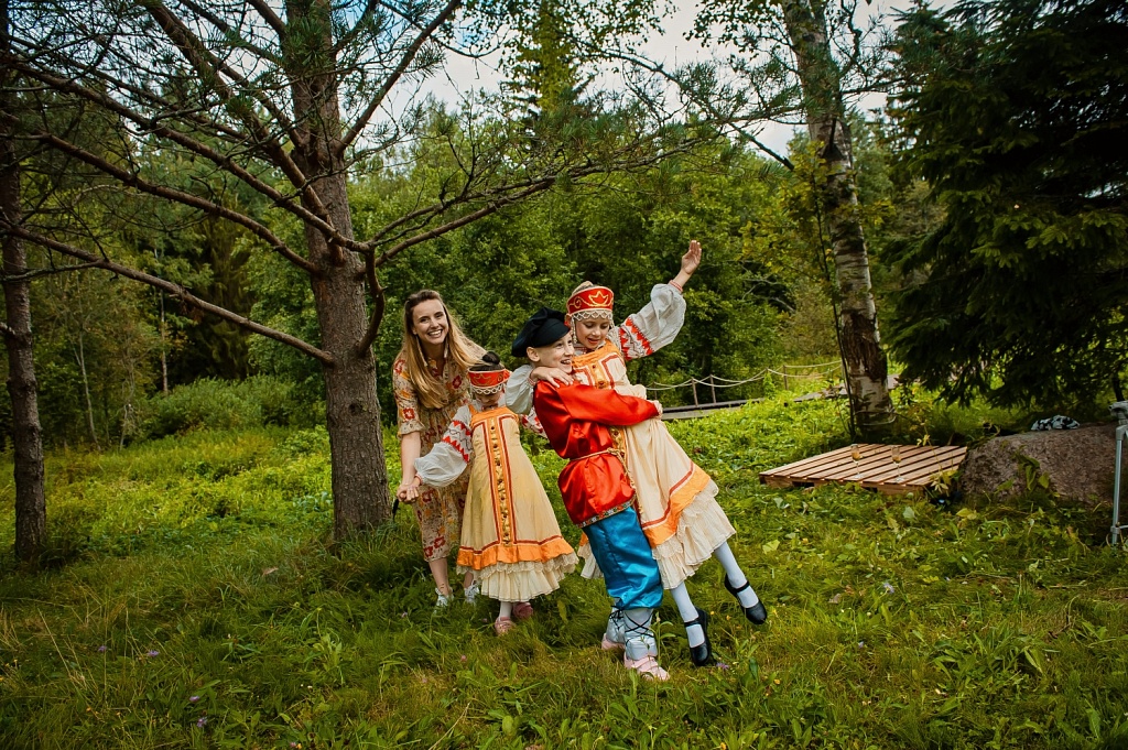 Что делать в летний день в дворянской усадьбе? Приятно коротать время с друзьями, чтобы еще долго вспоминать эти счастливые минуты. Мы гуляли вокруг пруда, ездили верхом, играли в городки с «крестьянскими ребятишками», стреляли из лука, наблюдали за искрами над вечерним костром и много-много изобретательно фотографировались.