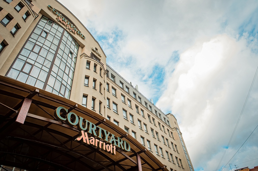 Свой рассказ о поездке читателей MICE&more сразу хочется начать именно с Усадьбы, но оставим этот визит на финал, а в начале расскажем об отеле Courtyard by Marriott St. Petersburg Center. У отеля есть еще одно название – «Пушкин». Пушкин в этих прекрасных стенах не останавливался, но поселил героев своей шуточной поэмы «Домик в Коломне» именно в этот район города. Отель выходит на Канала Грибоедова (еще одно писательское имя), а неподалеку начинаются места Достоевского, да и до Медного Всадника можно дойти пешком. В общем, весьма знаковое место. Здесь легко окунуться в атмосферу Санкт-Петербурга 19-го века. Причем сам отель современный, в лучших стандартах Марриотта, и как с иголочки, не смотря на то, что ему больше десяти лет.