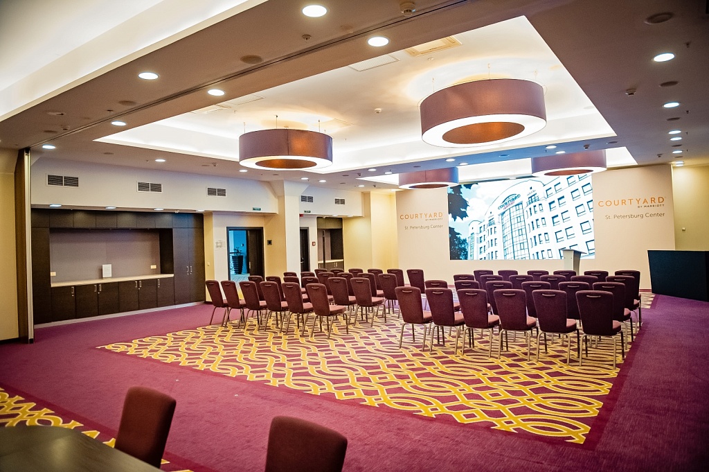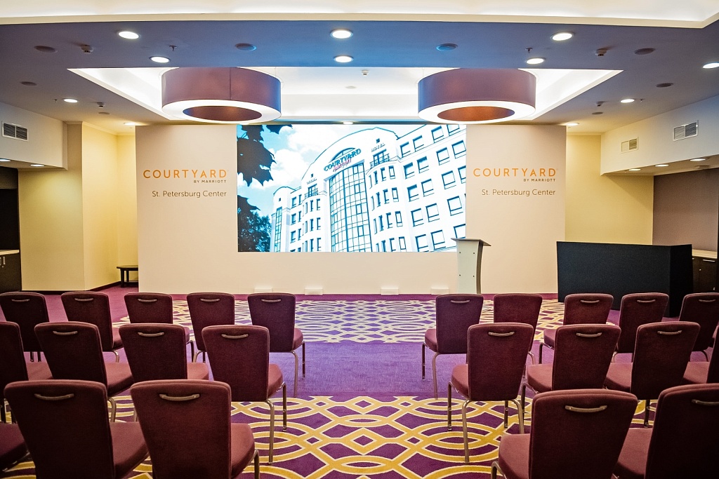 Нас впечатлил невероятно душевный прием со стороны менеджеров и MICE возможности Courtyard by Marriott St. Petersburg Center. Конференц-залы, названные именами писателей, отлично оснащены с технической точки зрения. Большие светодиоидные экраны стильно вписаны в каше, панели которого могут быть брендированы под ваше мероприятие.