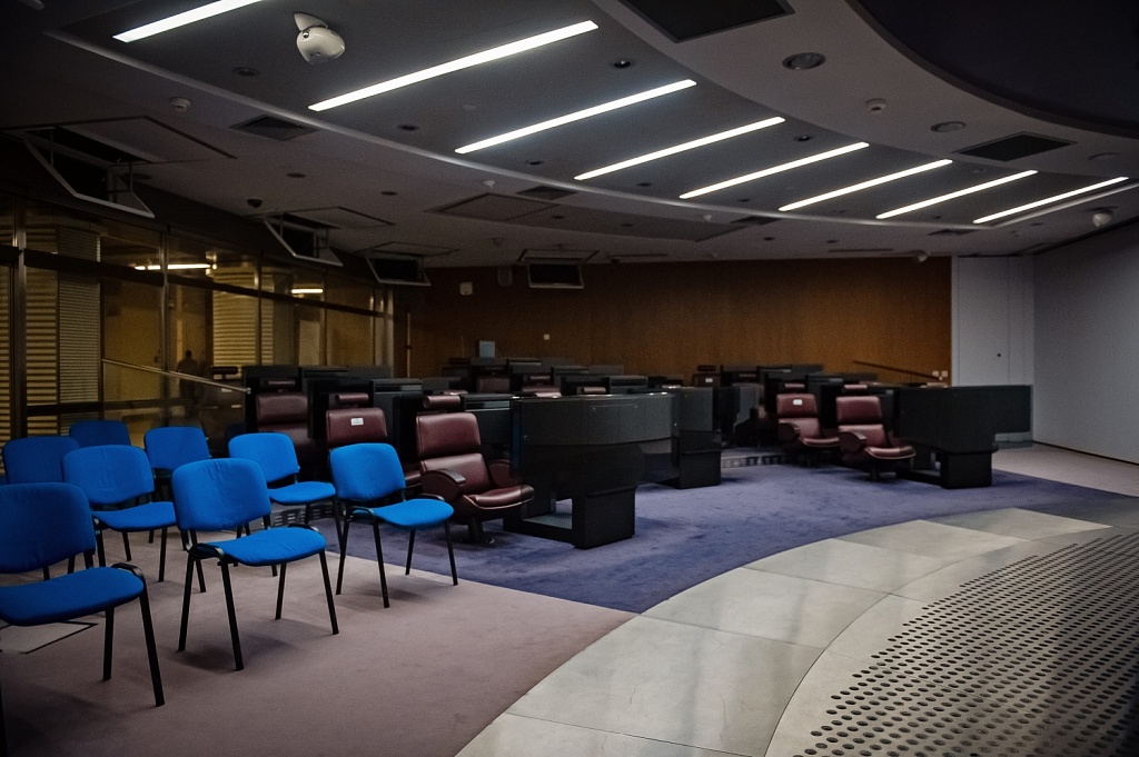 Отметим, что особенно удивляет нижний этаж, - он оформлен и оборудован на контрасте как мультимедийный комплекс. Это современнейшее технологическое пространство в стиле хайтек, предназначенное для гибридных мероприятий с высоким качеством связи на уровне президента страны.