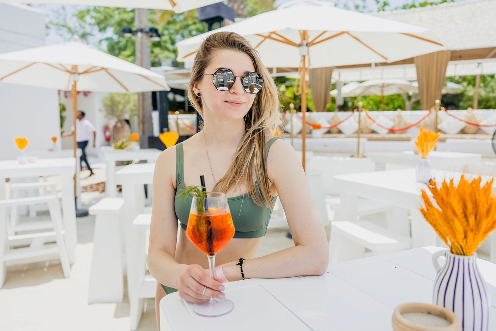 Наша любовь на самой южной точке острова. Один из лучших пляжей, которые мы когда-либо встречали. Длинная береговая линия. Белый плотный песок. Чистейшая прозрачная вода. Широкая акватория. А, главное, безупречный сервис на берегу: термосумки с водой и льдом, солнцезащитный крем, зарядные устройства, салфетки для очков, кнопка вызова персонала и заказа еды. Так же оборудованы и пространства вокруг многочисленных бассейнов, из которых особенно впечатляет инфинити.
