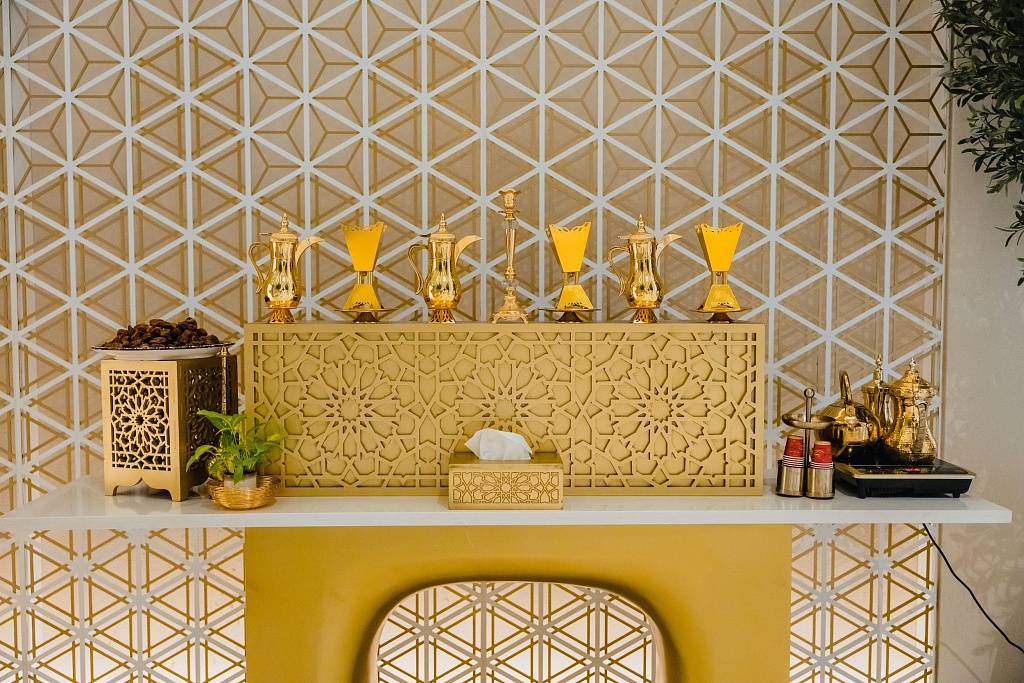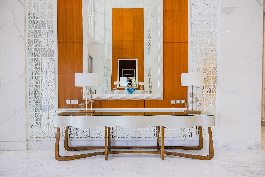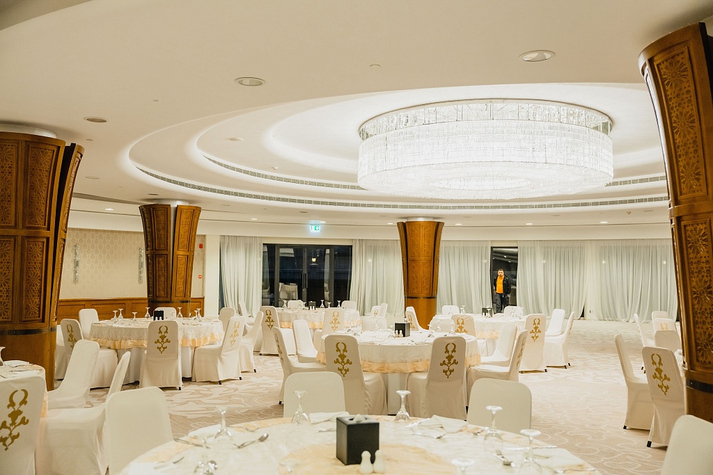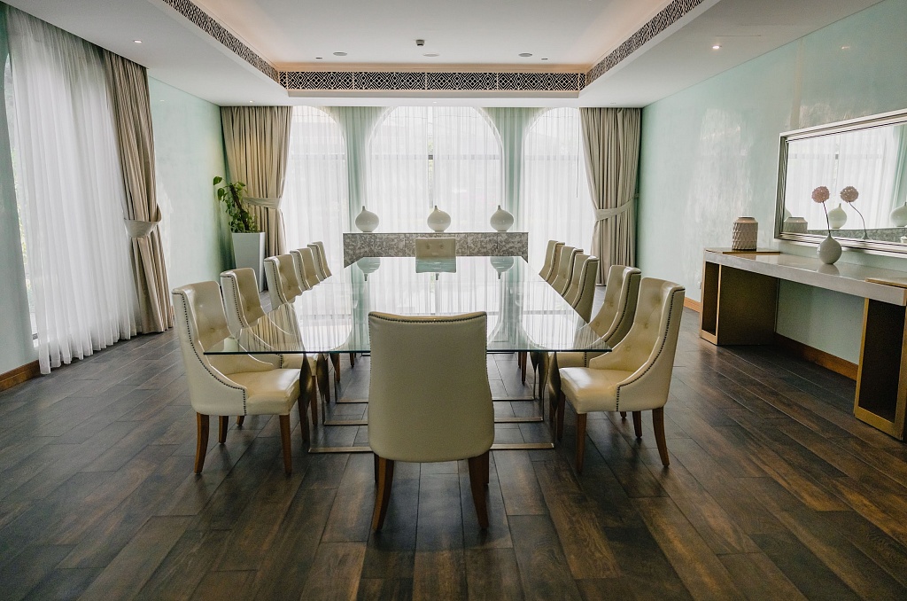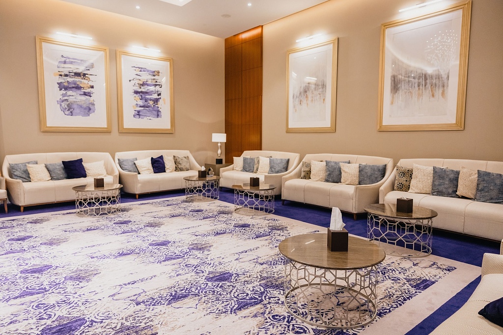 Два роскошных ballroom: Ulfa до 300 гостей и Wafaa до 100 гостей. Три переговорные комнаты с высокими потолками и видами на море. Элегантная комната для эксклюзивных встреч VIP Majlis.