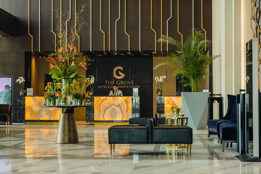 Отель расположен на первой береговой линии по соседству c The Grove Hotel. Его главная отличительная особенность – sea view из каждого номера (!). В номерах категории suite есть открытая терраса с джакуззи. Общая атмосфера отеля – курортная, демократичная. Стиль – легкий, современный, с футуристичным дизайном в лобби. На территории есть открытая площадка для проведения гала-ужинов. Но особенно эффектными они будут на специально насыпанной косе, уходящей в залив. Пляж достаточно широкий и хорошо приспособлен для проведения тимбилдингов.