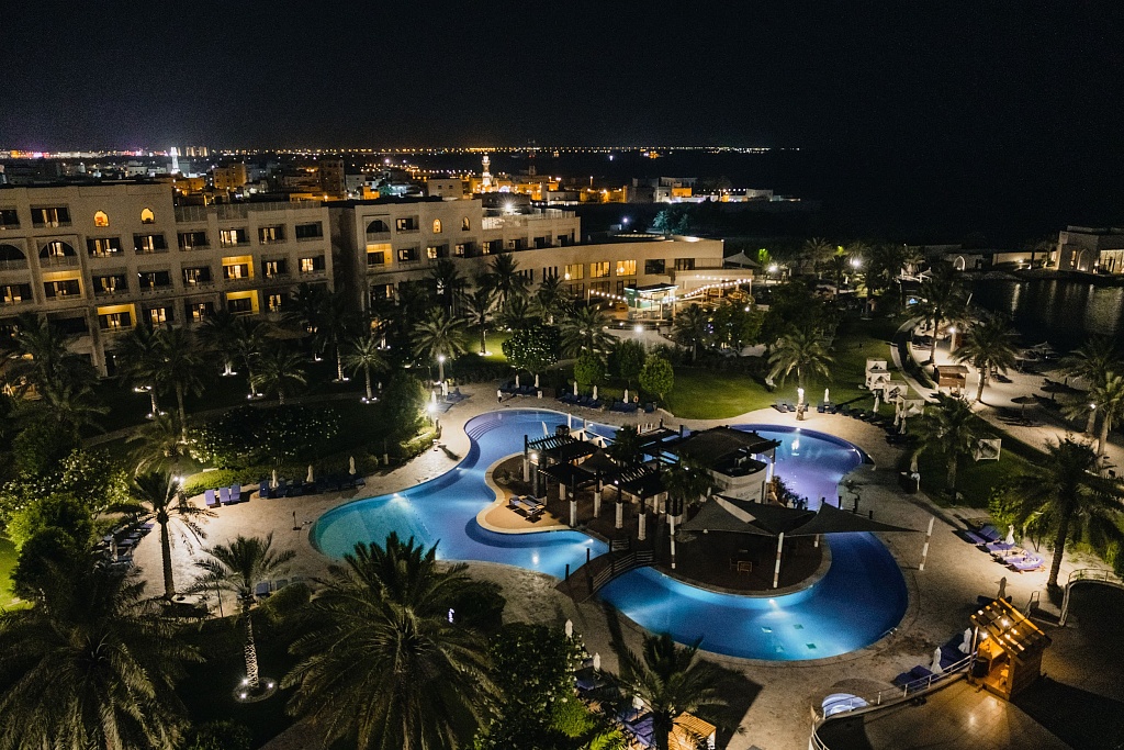 С этого отеля началось наше знакомство с Бахрейном. Здесь расположен офис компании Visit Bahrain. Отель находится на искусственном острове Амвадж («плавучий город») в 20 минутах от аэропорта. Здесь максимально развиты передовые технологии. Высокий процент населения составляют экспаты. Отель прошел через ряд реноваций и удивляет своей современностью, открытостью всему новому. Улучшения происходят в нон-стоп режиме. Повсюду – и в номерах, и в рекреациях – видовые окна. Конференц-часть занимает два этажа, она включает 4 переговорные комнаты и 3 конференц-зала с просторным фойе, которое можно использовать под выставку. Al Marasim Ballroom (зал-трансформер из двух частей) позволяет принять до 700 гостей с рассадкой «театр».