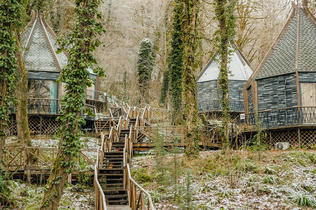 Премиальный эко-отель укрылся под кронами могучих деревьев в реликтовом лесу на берегу реки Чвижепсе, что в переводе с убыхского языка означает «вода, дающая радость». Здесь находится минеральный источник, из которого разливается натуральная вода «Медвежий угол». Как говорят в этом глемпинге: каждый, кто приедет сюда хотя бы на уикенд, обретет радостное состояние духа и не захочет спешить к повседневным делам. Поэтому финальный фамтрип года для Community MICE&more мы решили провести именно в River Side Resort & SPA.