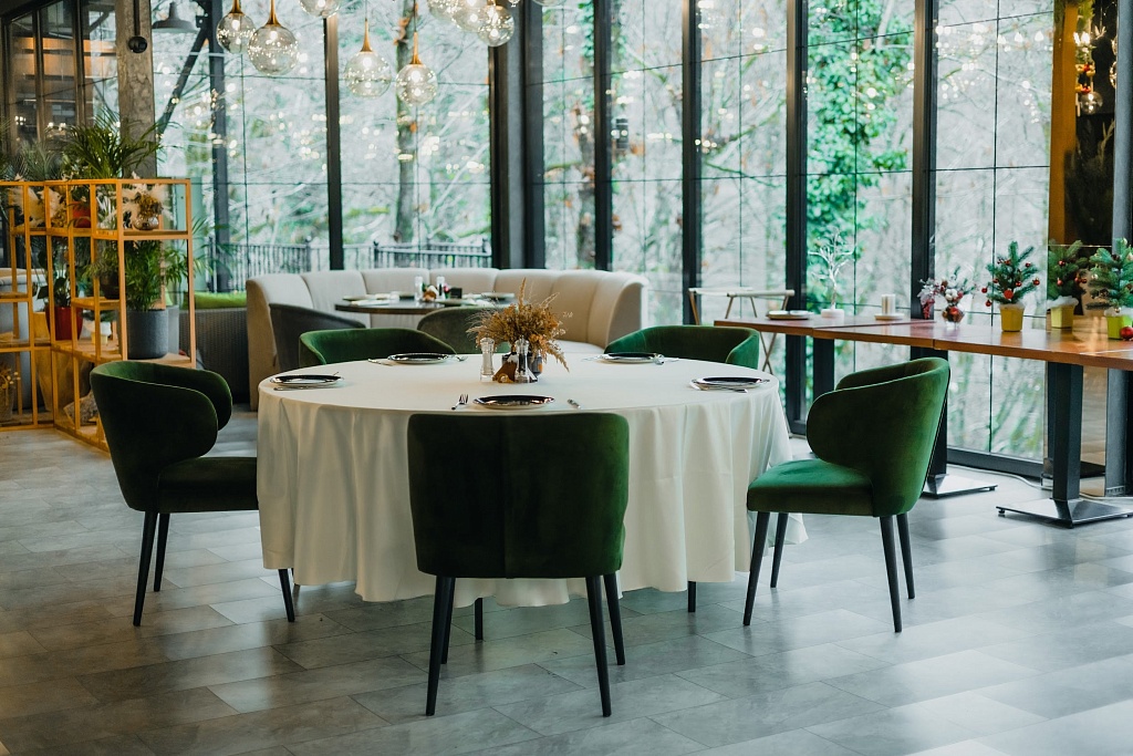 В таком волшебном месте должна быть сказочно вкусная еда. Основная гастрономическая идея — симбиоз кавказской и русской кухни, основанный на дарах леса и локальных деликатесах в авторском исполнении от шеф-повара Андрея Александрова. При ресторане собрана отличная энотека, в которой можно провести винное казино.