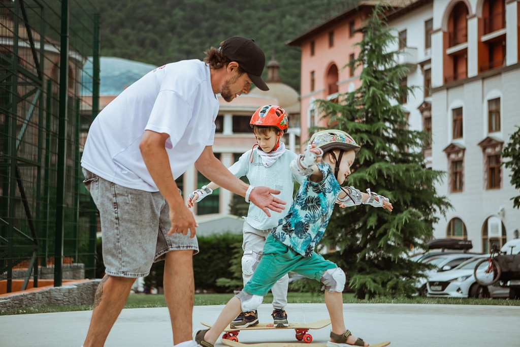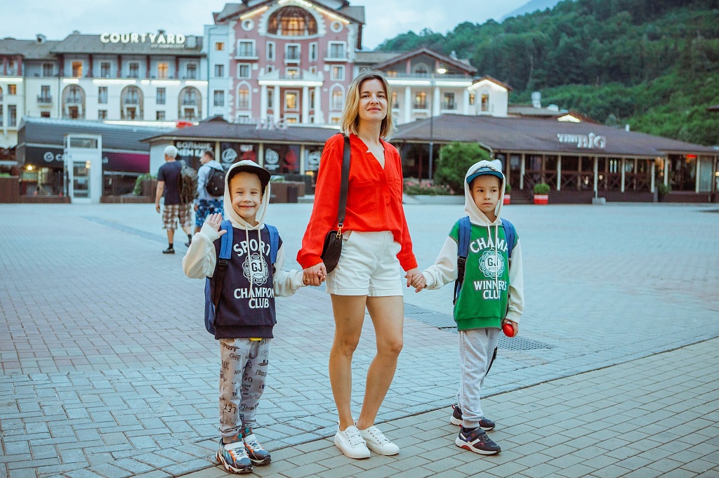 Мультимама Лина Москвина: «Мои мальчишки Матвей и Платон (7 лет) не первый раз на Курорте Красная Поляна, но впервые отправились в настоящий поход в горы. Им было интересно абсолютно все: познакомиться с природой, проверить свои силы, пройти за один день 12 с половиной (!) километров. Несмотря на такой продолжительный маршрут, после возвращения ребята с удовольствием попробовали покататься на скейте с очень заботливым инструктором в школе райдеров.