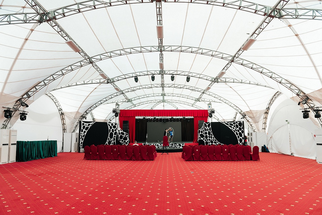 Большинство корпоративных мероприятий проходят именно здесь. Уютный шатер вместимостью до 450 гостей, с отличной сценической площадкой, подойдет в том числе и для камерных ивентов.