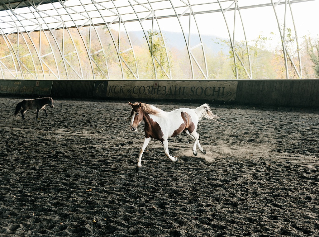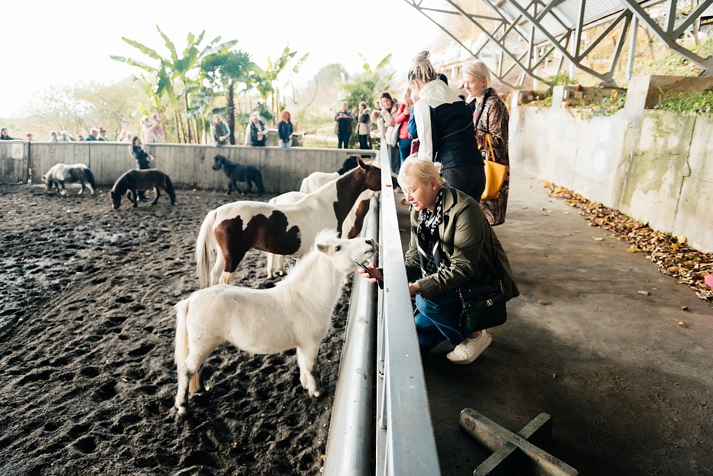 Очень важно отметить, что комплекс – это не только фермерское хозяйство, но и конноспортивный клуб. Именно с показа лошадей началось наше знакомство с фермой. Интересно, что здесь формируют программу корпоративного мероприятия индивидуально «под клиента»: от познавательной экскурсии до зрелищной выводки элитных спортивных лошадей и театрализованного конкурса, от уютного чаепития до роскошного застолья. То есть и для тех, кто хочет смотреть, и для тех, кто предпочитает действовать.