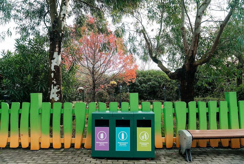 Экскурсию по территории провела инженер-эколог парка Светлана Арутюнян, которая подробно рассказала о всех этапах переработки отходов, а также о технологиях раздельного сбора мусора. Мы познакомились с устройством фандомата для сбора пластиковых бутылок, с интерактивным аппаратом «Лесомат», который позволяет «посадить» виртуальное дерево, а также «исследовали» урны для раздельного сбора мусора.