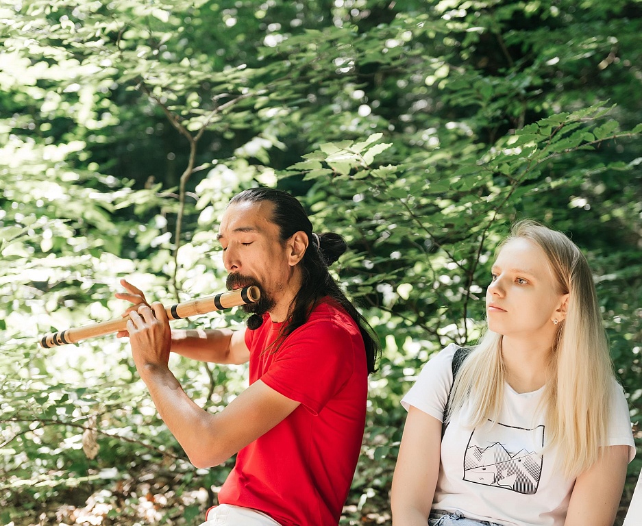 Отдельно отметим, что это был необычный хайкинг – с задушевными разговорами о жизни, о нашем личном воплощении, в исполнении гида Армана. О нем хочется сказать пару слов отдельно. Это необыкновенный человек. Благодаря ему и его завораживающей индейской флейте-пимак мы вернулись в мир, словно с другим взглядом на мир, который нас окружает. Мы пытались соединиться с энергией леса. Слушали себя и природу.