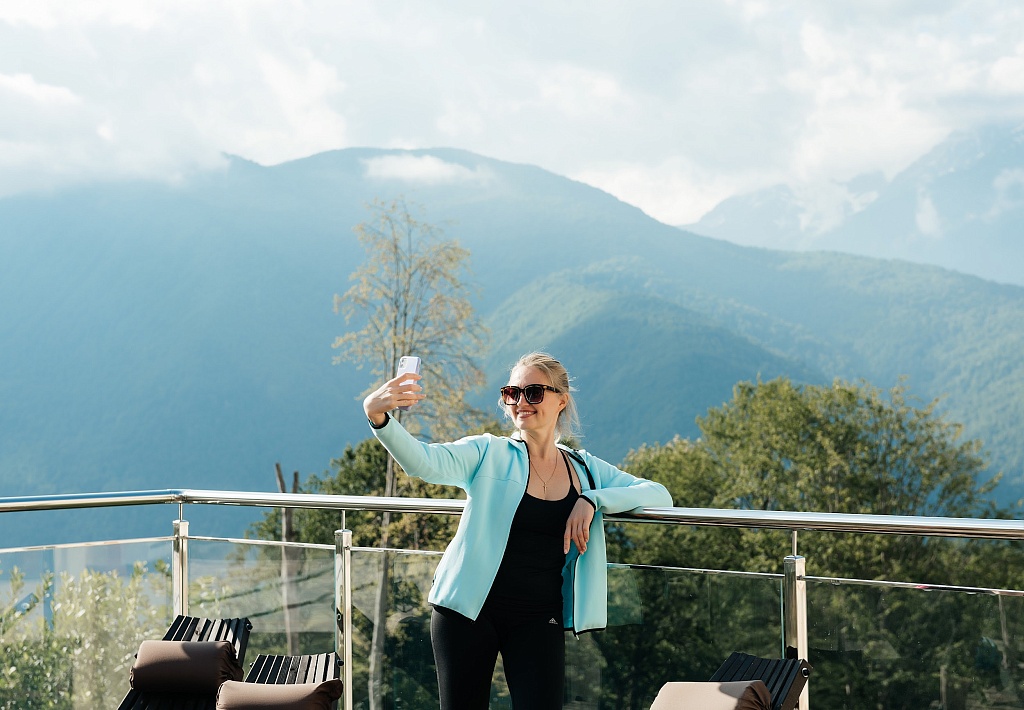 Локация: панорамная терраса «Сердце гор», Novotel Resort and spa Krasnaya Polyana 5*, Поляна 960.