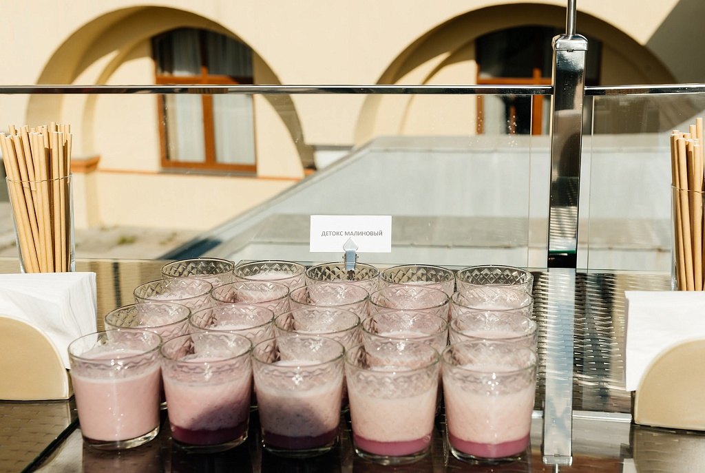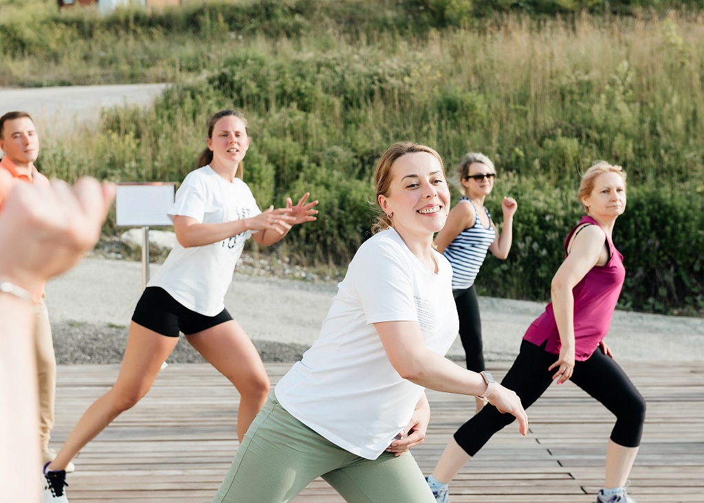 На этой площадке можно проводить выездные регистрации, а для нас была организована – зумба! Это спортивные танцы под зажигательные ритмы, поэтому удобная обувь обязательна. Отличная активность на свежем воздухе и с прекрасными видами! Смело ее рекомендуем вам как тимбилдинг. Помогает сбросить напряжение после делового дня и, тем самым, сохранить баланс между работой и жизнью. Задает волну веселья и хорошего настроения. Мужчины тоже могут принять участие. А фит-коктейли в перерывах между сетами (бананы, апельсины, малина) делают зумбу еще более драйвовой.