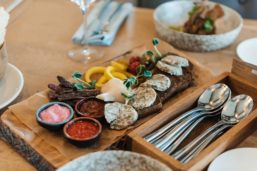 Наш вердикт: лучший ресторан. Теперь находится под управлением Курорта Красная Поляна. Главное, что очень вкусно. Свой умопомрачительный хлеб, свои хрустящие огурчики, гренки с нежным сальцем, наваристая уха, правильный тартар, легкая индейка на гриле с перечным соусом. Но больше всего впечатлил мусс из свежайших ягод. Мы хотели отказаться от десерта, но он исчез в мгновении ока – настолько легкий и гармоничный по вкусу. А знаменитый краснополянский сбор (чай), что называется, «в самое сердечко!».