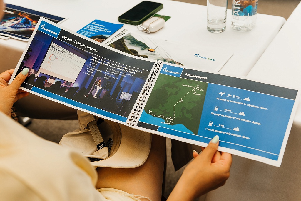 «Гранд Отель Поляна» выдержан в элегантном, респектабельном стиле, отражающем историю создания туристической инфраструктуры Газпрома. Он передает атмосферу статуса и комфорта. Здесь привыкли к гостям, которым важен высокий уровень сервиса. По традиции, в стенах отеля проводятся ответственные мероприятия с участием первых лиц страны. Что касается нашей группы, в конференц-зале «Гранатовый» мы познакомились с руководителями отдела продаж и отдела мероприятий, изучили презентации курорта, а далее перешли к приветственному ужину в ресторане с панорамными окнами.