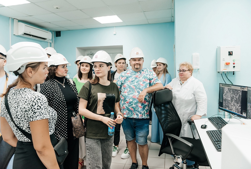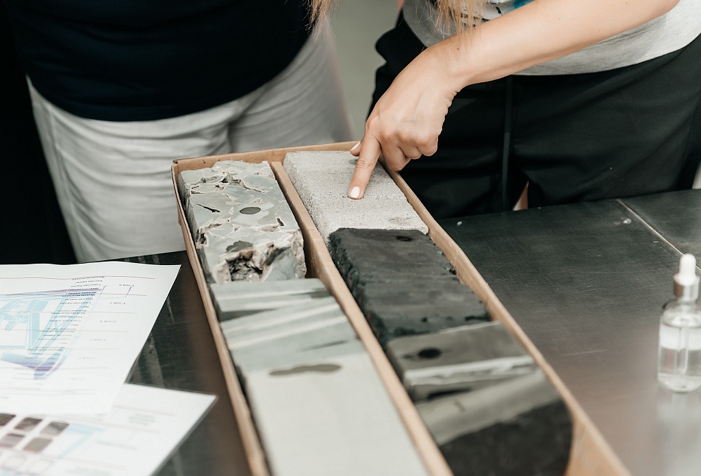 По своей программе мы посетили кернохранилище, перед этим заглянув в гугл – что это вообще такое? Ну, ок, керн - горная порода. А почему нам должно быть там интересно? В итоге, слушали, открыв рты, словно сказки, берущие начало миллионы лет назад. Перед нами предстал целый огромный мир, скрываемый в недрах планеты. Наш экскурсовод Астаркин Сергей Васильевич – это ученый и преподаватель от Бога. Он горит своим делом. И, конечно, самые яркие эмоции мы испытали на мастер-классе, когда нас одели в белые халаты, выдали перчатки. Одна часть группы описывала образцы породы, с помощью простых манипуляций проверяла ее происхождение. Другая часть собирала фрагменты керна, как конструктор. Столько новой информации! Полный восторг! Особенно, когда нас посвятили в нефтяники. Думаю, что в следующий раз надо бы организовать для групп посещение скважин.