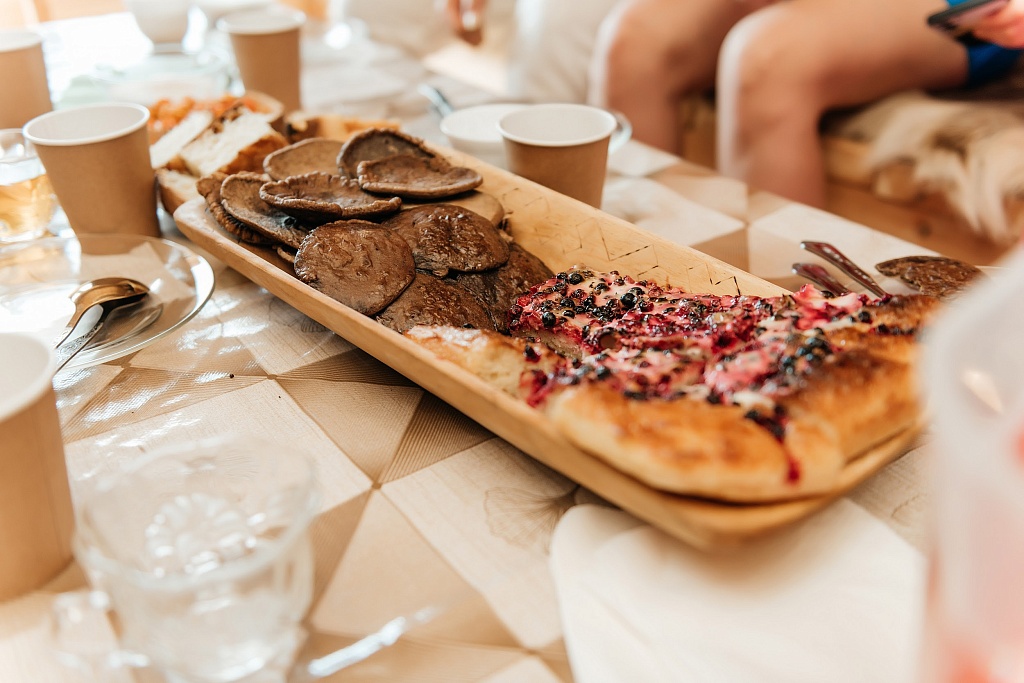 На гастроужине лакомились строганиной из муксуна и пельменями из медвежатины. И снова идея! Надо для групп сделать мастер-класс по лепке пельменей.