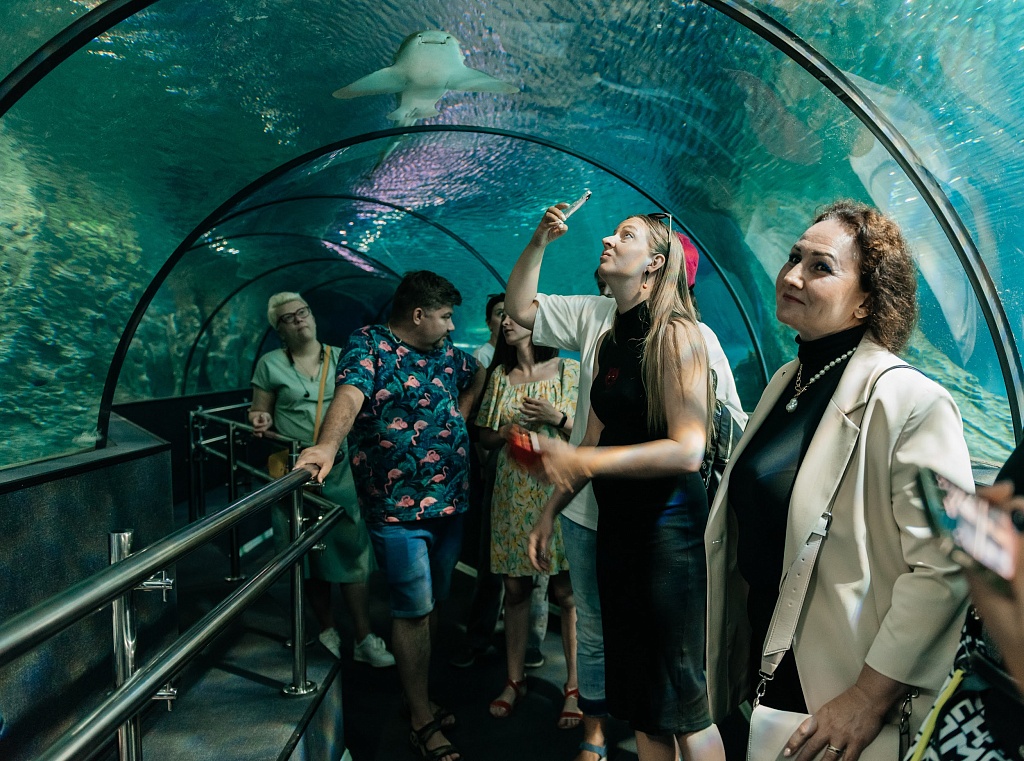 Торгово-развлекательный центр «Галактика». Казалось бы, может ли нас, жителей мегаполисов, удивить торговый центр? Оказывается, да. Впечатлила концепция этого места, созданного на территории Крайнего Севера. В оранжерее удивительные представители флоры и фауны со всего мира. Особенно поразил попугай, который танцует под «Ягоду-малинку». И мы, взрослые дяди и тети, сначала стеснялись, а потом хором исполнили этот хит и не раз. В океанариуме, самом дальнем от теплых морей, настоящее великолепие рыб и других морских обитателей: мы видели тут и двухметрового ската, проплывающего как огромное одеяло, и рыбку Немо с его подружкой Дори, и акулу, у которой можно посчитать зубы, пока она плывет над тобой. Да, в Дубаи мы видели нечто подобное, но что бы в Когалыме… Здесь даже сами делают морскую (!) воду. Кстати, есть и крэзи-меню. Благодаря которому в клетке можно погрузиться в воду или поплавать вместе с аквалангистами. В следующую поездку нам надо так и сделать! Что касается аквапарка, там мы «выпустили в себе детей»: с радостью покатались на плюшках с горок.
