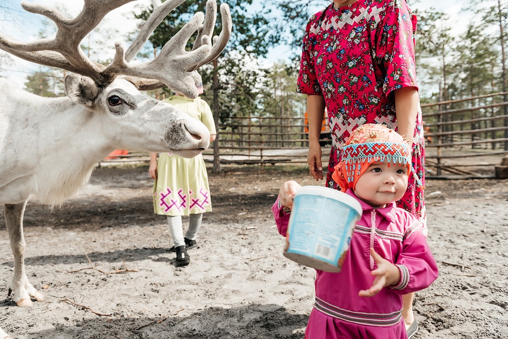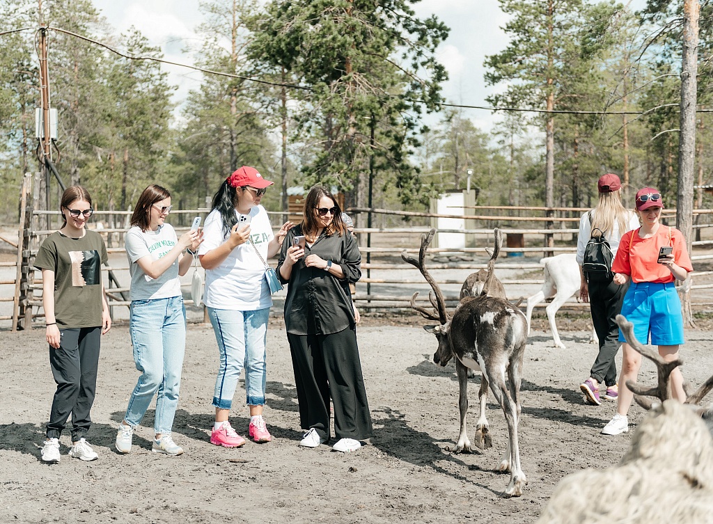 Поездка к оленеводам на стойбище. Первое впечатление от дороги. Особая красота Крайнего Севера, невероятная болотистая местность, мох, карликовые березки… Прямо чувствуется, как здесь буквально из воздуха рождаются легенды хантов. Даже проезд по бездорожью в огромных оранжевых автобусах для вахтовиков – это уникальный экспириенс, ради которого над ехать. Лукойл живет на древних землях хантов, поэтому сначала ты слушаешь о невероятных технических достижениях XXI века, разработке месторождений, видишь вдали вышки, КУСТы… а через полчаса попадаешь почти в первобытный быт оленеводов, где некоторые до сих пор стирают вещи вручную в холодной речке. Как же замечательно мы провели время в семье Людмилы Айваседа! Мы словно на другой планете побывали. Нас не могли загнать обратно в автобусы. Прониклись местом, людьми, добротой, гостеприимством, прошли обряд очищения дымом, повязали ленты на древо желаний, отпраздновали вместе день рождения сына хозяев Данилы. Очень впечатлены культурой хантов, их ритуалами, есть в этом что-то мистическое.